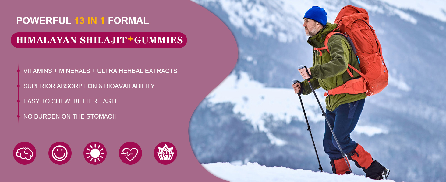 • تعزيز الحيوية والقدرة على التحمل: قل وداعًا للتعب واحتضن حيوية لا حدود لها مع علكات شيلاجيت! يأتي راتنج شيلاجيت للرجال من المناطق المرتفعة في جبال الهيمالايا، فوق 16000 إلى 18000 قدم فوق مستوى سطح البحر. تحتفظ علكات مكملات الشيلاجيت العضوية الخاصة بنا بأكثر من 85 من المعادن النزرة وهي غنية بحمض الفولفيك وحمض الهيوميك والعناصر النشطة بيولوجيًا. يحتوي على خصائص التكيف الطبيعية التي تعزز قدرتك على التحمل، مما يساعدك على التغلب على التحديات وعيش كل لحظة بالطاقة.*