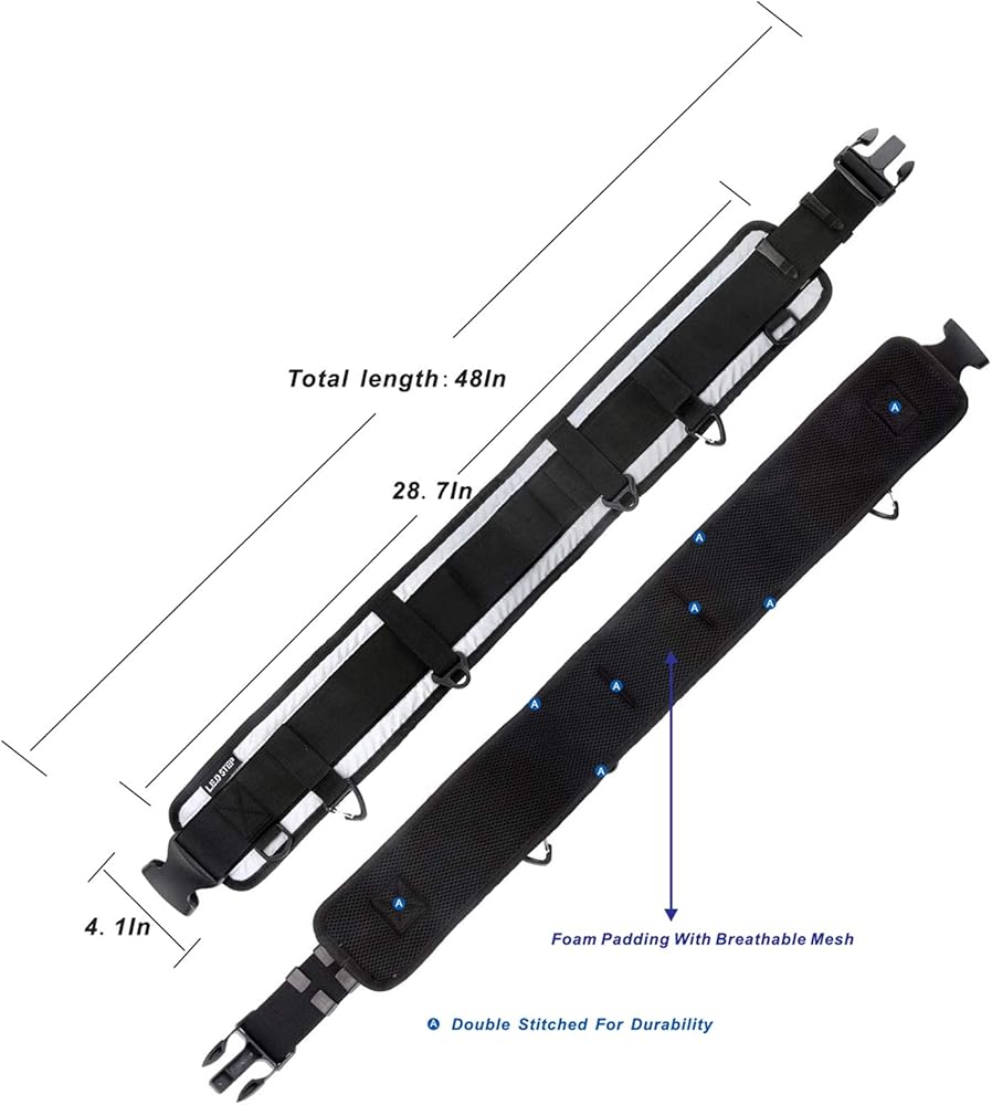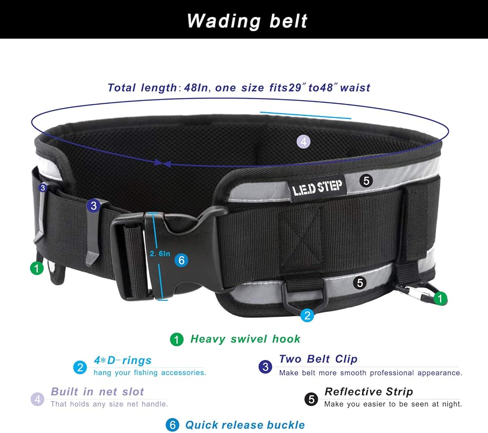 حزام الصيد مناسب للخصر من 29 انش إلى 44 انش، قابل للتعديل بالكامل، ومناسب لمعظم صدر الرجال. حزام الخصر مثبت بمشبك أمان، والضيق قابل للتعديل وفقًا لاحتياجاتك الخاصة.