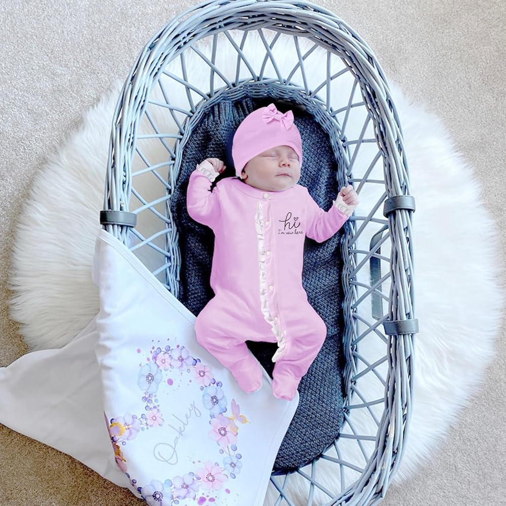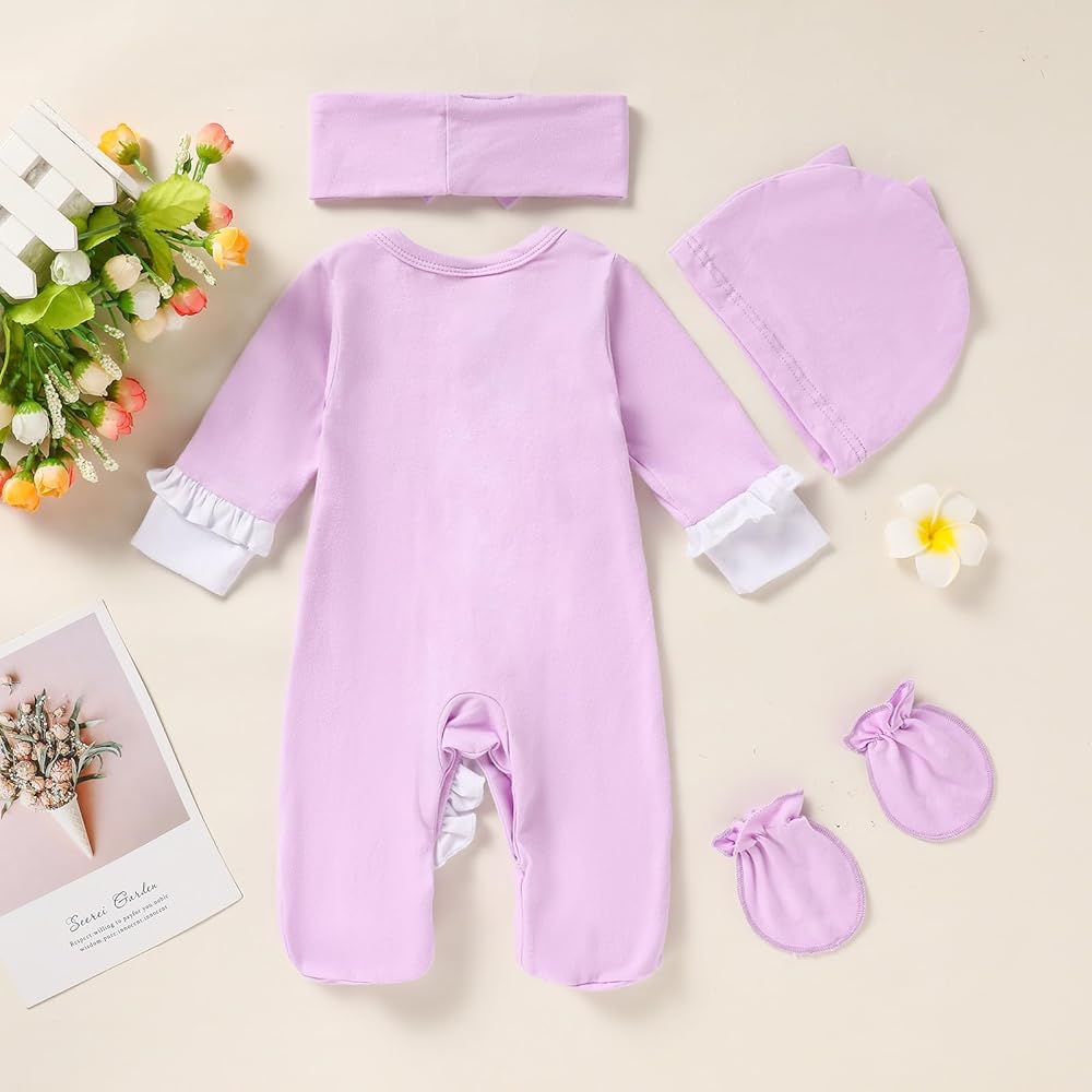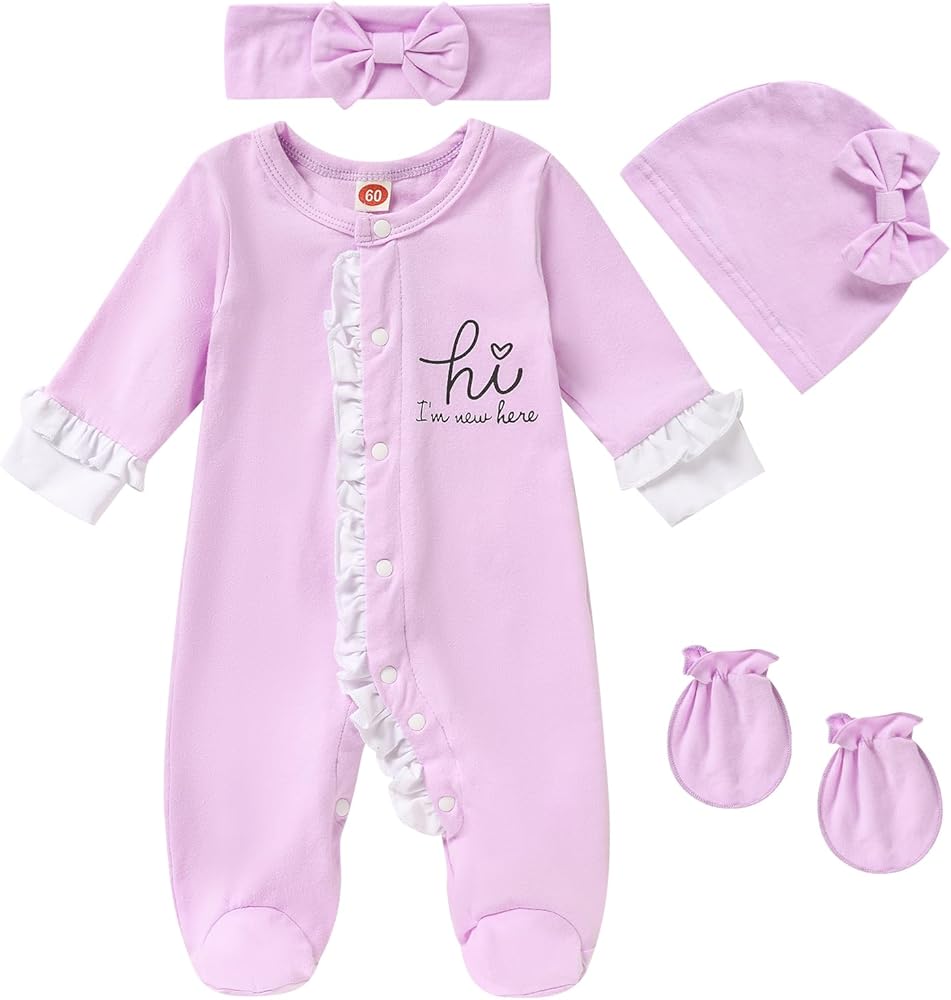 【تصميم حماية للفتيات حديثي الولادة】بدلة الأميرة الجديدة للفتيات حديثي الولادة وقفاز قابل للطي يغطي جميع المقاسات لمنع الطفل من خدش نفسه. تصميم مزود بأزرار كبس يسمح بسهولة الارتداء والخلع، وهو مثالي لتغيير حفاضات الطفل. عصابة رأس وقبعة رائعة على شكل قوس للأطفال تتناسب بشكل مريح حول رأس طفلك الصغير، مما يجعل طفلتك الصغيرة أكثر جاذبية وجاذبية، الجودة هي أول شيء يمكننا التأكد منه.