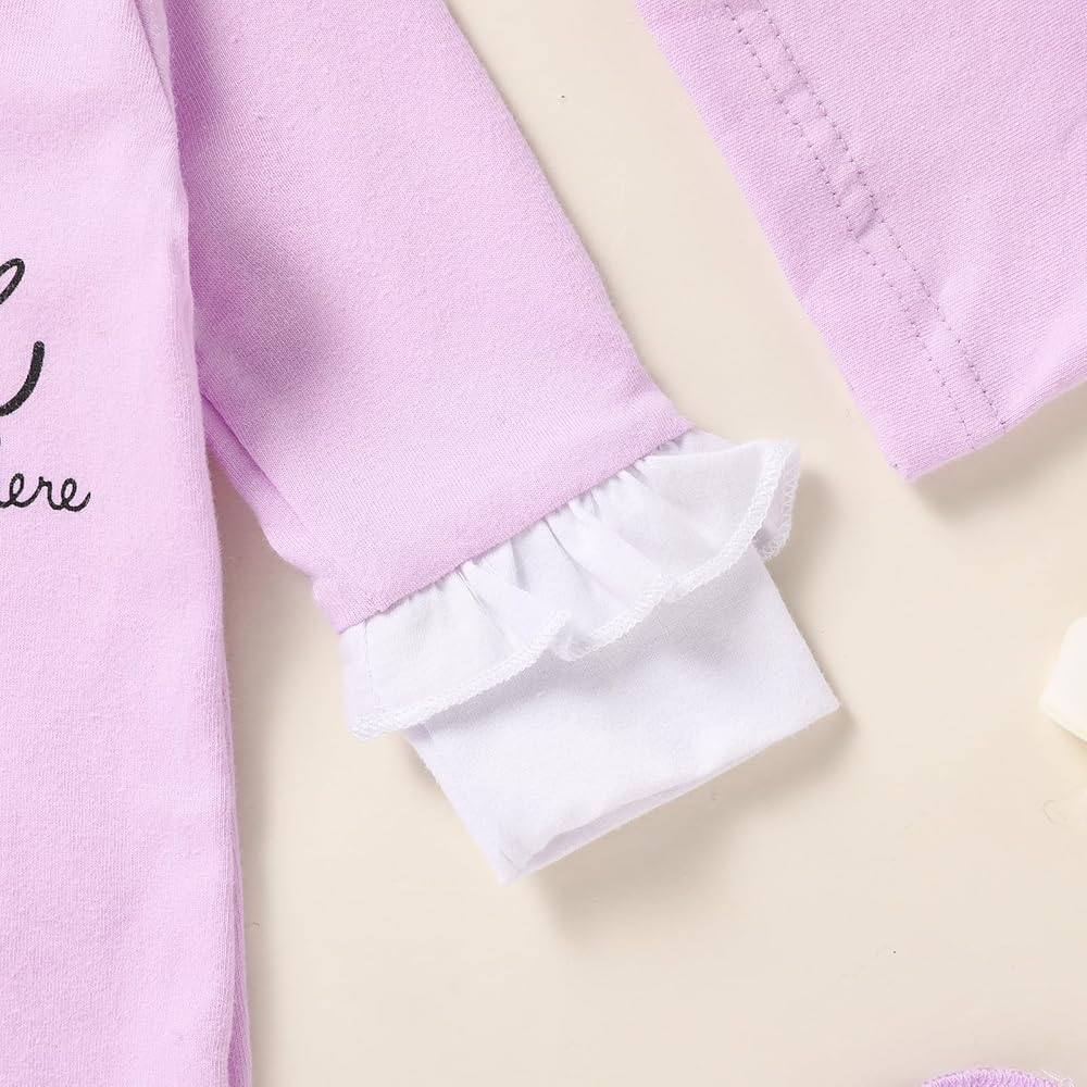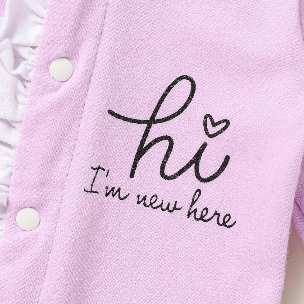 【تصميم لطيف】تطبق ملابس الفتيات الرضع عناصر وألوان لطيفة للغاية، وتتميز برقبة دائرية كلاسيكية، وأكمام طويلة، وقميص مطبوع من القطن الناعم قطعة واحدة، بدلة رومبير للأطفال، مطبوعة بحروف "مرحبًا، أنا جديد هنا" "الأميرة لديها وصلت ""الأخت الصغيرة" في المقدمة، تنقل معنى الترحيب بالعالم.. ملابس الأطفال حديثي الولادة لدينا تجلب جوًا رائعًا وسعيدًا للطفل والعائلة، دع طفلك ينمو في الحب.
