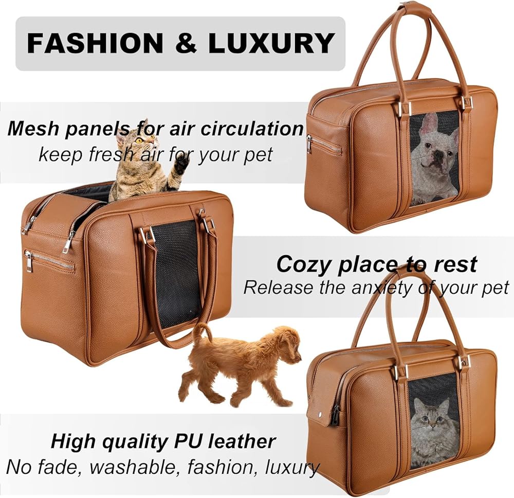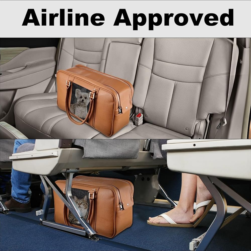 نويل حقيبة حمل عصرية للكلاب الصغيرة مع جيبين إضافيين، تحمل ما يصل إلى 10 باوند، حامل حيوانات أليفة من جلد البولي يوريثين، حامل للقطط، حامل محفظة للجراء معتمد من شركات الطيران للسفر (بني، مقاس S)