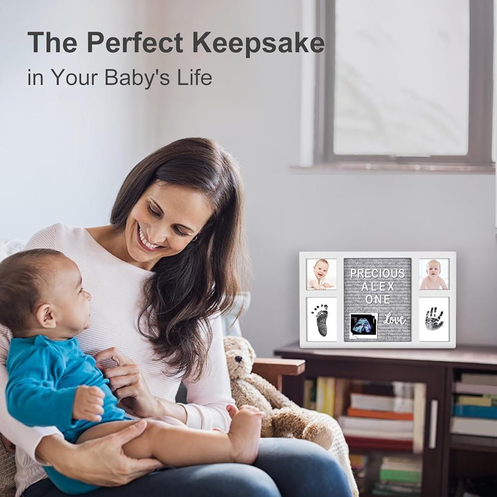 • هدية مثالية لاستحمام الطفل - اعرض اللحظات الخاصة في السنة الأولى لطفلك. تلتقط مجموعة أيدي الأطفال وبصمات الأقدام ذكريات رائعة باستخدام لوحة أبجدية وتتضمن كل ما تحتاجه دون أي عمليات شراء إضافية. يأتي الإطار التذكاري للطفل مزودًا بخطافات لسهولة التركيب على الحائط ويمكن استخدامه أيضًا كشاشة عرض مدعومة على الطاولة. مثالية كهدايا تكشف عن الجنس، وهدايا لحديثي الولادة، وهدايا مخصصة للأطفال.