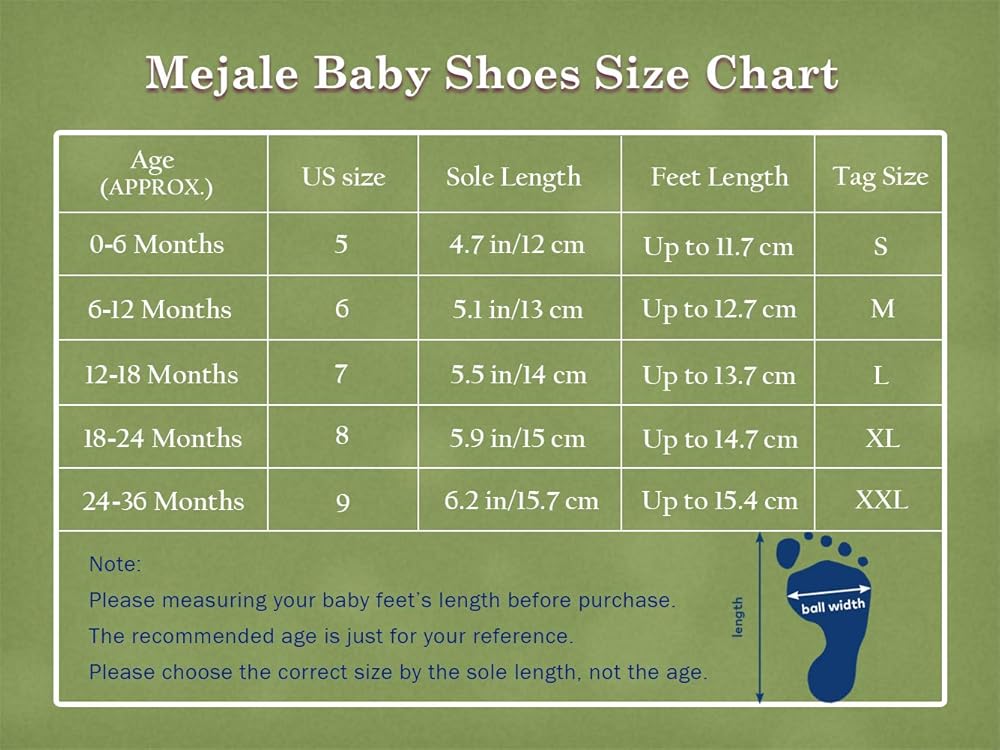 ★The age is just as reference, please choose the size according to your baby feet length. If your baby feet is 12cm long, please choose the shoes at 0.7cm longer, because baby feet need room to grow into.