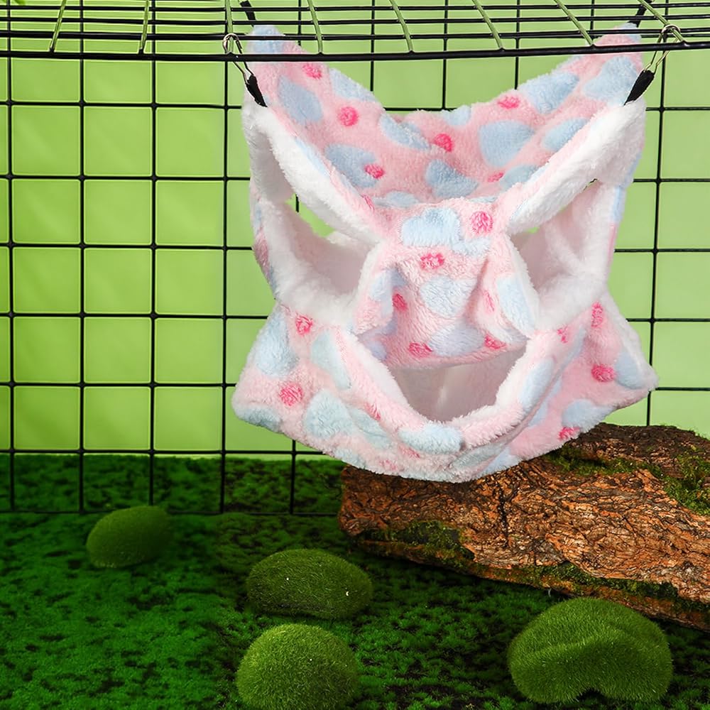 The guinea pig hammock features charming heart shaped patterns for warmth and comfort that your pet will love.