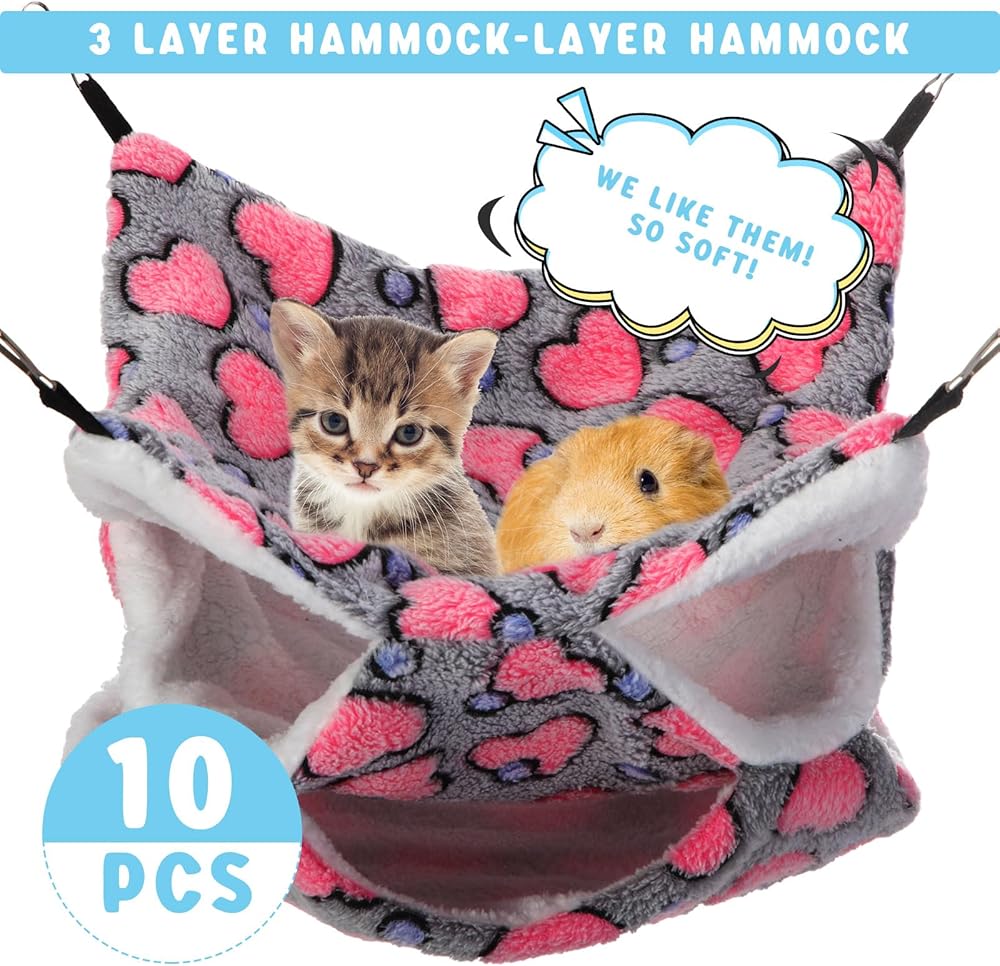 Sadnyy 10 قطع خنزير غينيا الفئران أرجوحة طبقة مزدوجة سرير النوم اللعب الحيوانات الصغيرة معلقة قفص أرجوحة دافئة لقوارض شينشيلا الزواحف الشراعية السنجاب مخبأ اللعب النوم (نمط جديد)