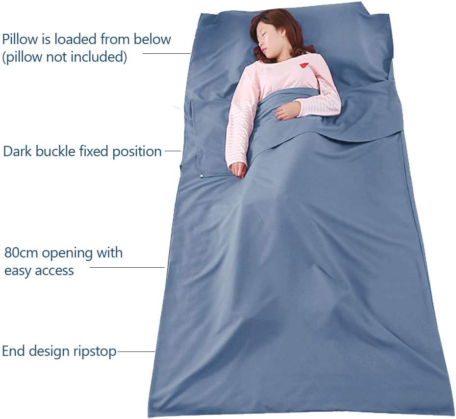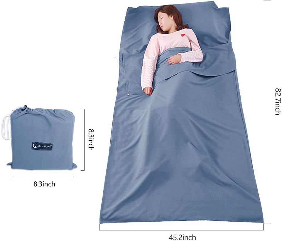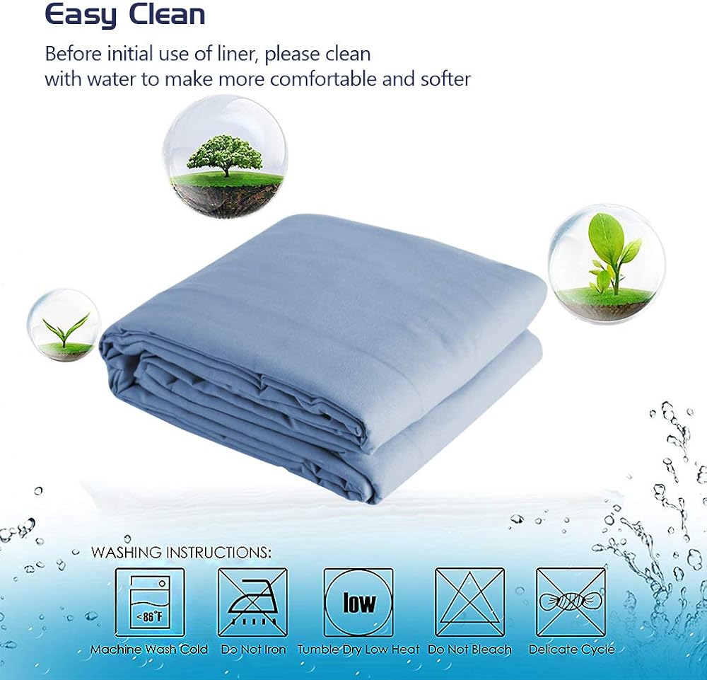 【GENEROUS SIZE & VIBRANT COLORS】- Available in Mysterious Blue, Gemstone Blue, and Navy Blue, our sleeping bag liner comes in two sizes: 45.2x82.7 inches and 63x82.7 inches. It comfortably accommodates sleepers up to 82.7 inches tall, allowing even tall individuals to move, stretch their legs, and turn comfortably in their sleeping bag or hotel bed.
