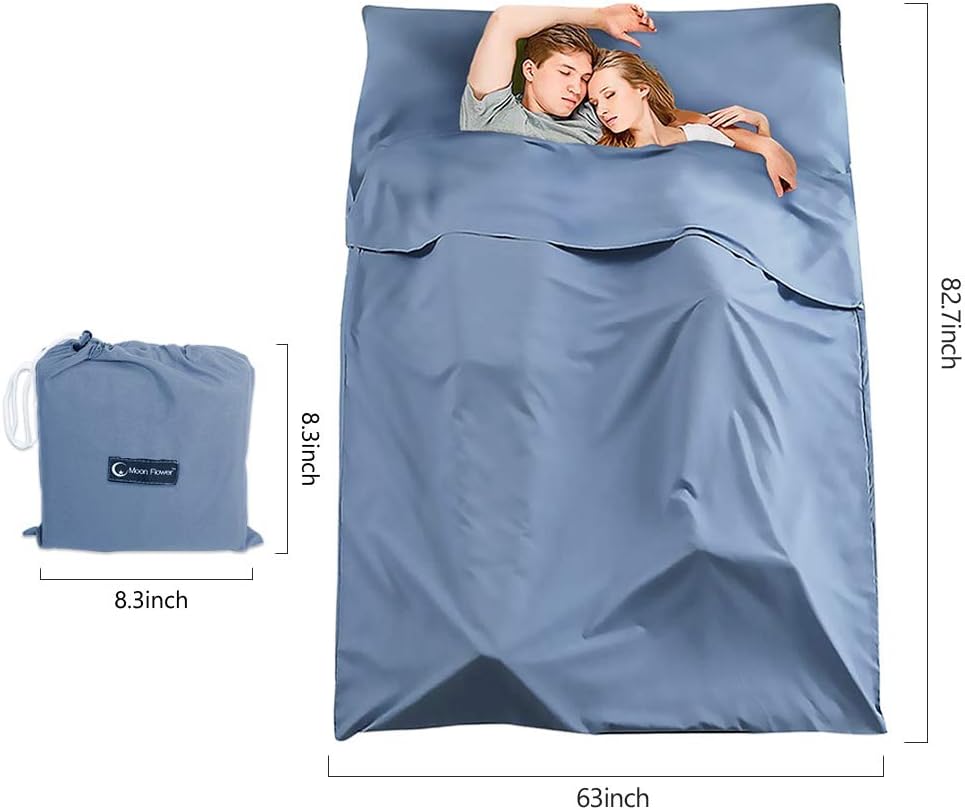 【LIGHTWEIGHT & EASY TO CARRY】- Our sleeping bag liner comes in two specifications: 45.2x82.7 inches=20oz (573g) and 63x82.7 inches=23oz (650g). Despite its generous size, it can be easily folded into a compact 8.3x8.3-inch pocket when not in use. Travelers will find it convenient to pack in their backpacks without adding extra weight, while business people can effortlessly carry it in their handbags.