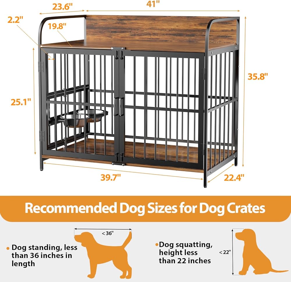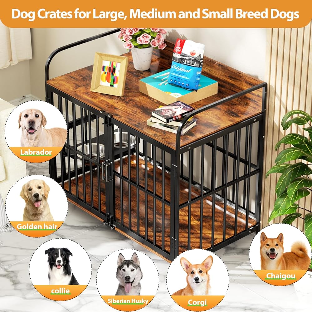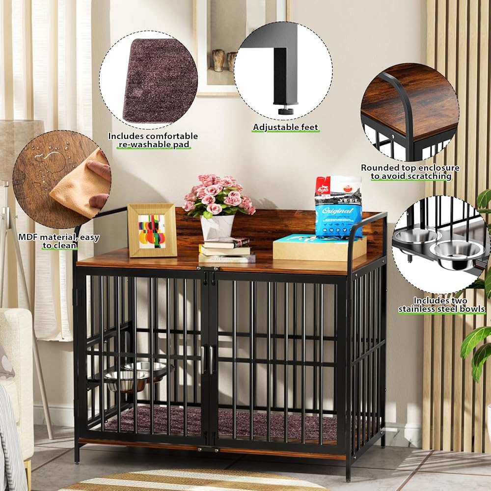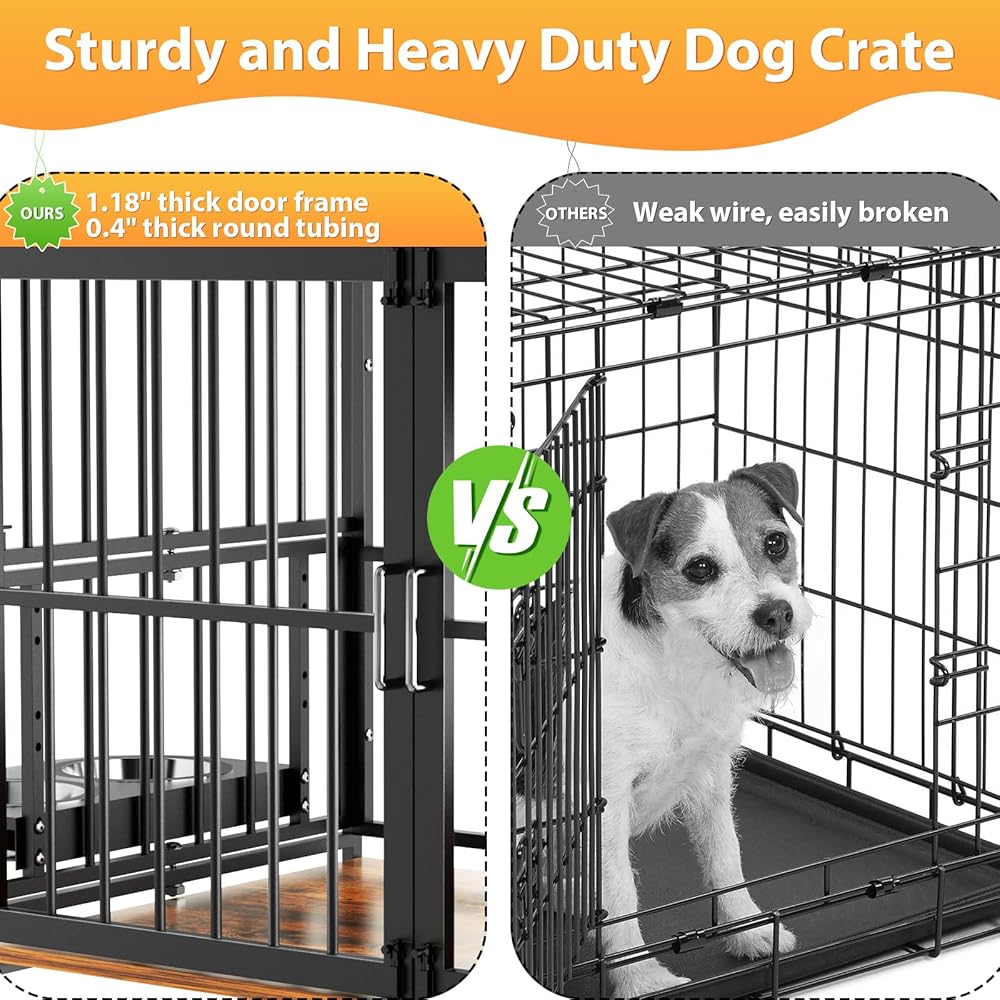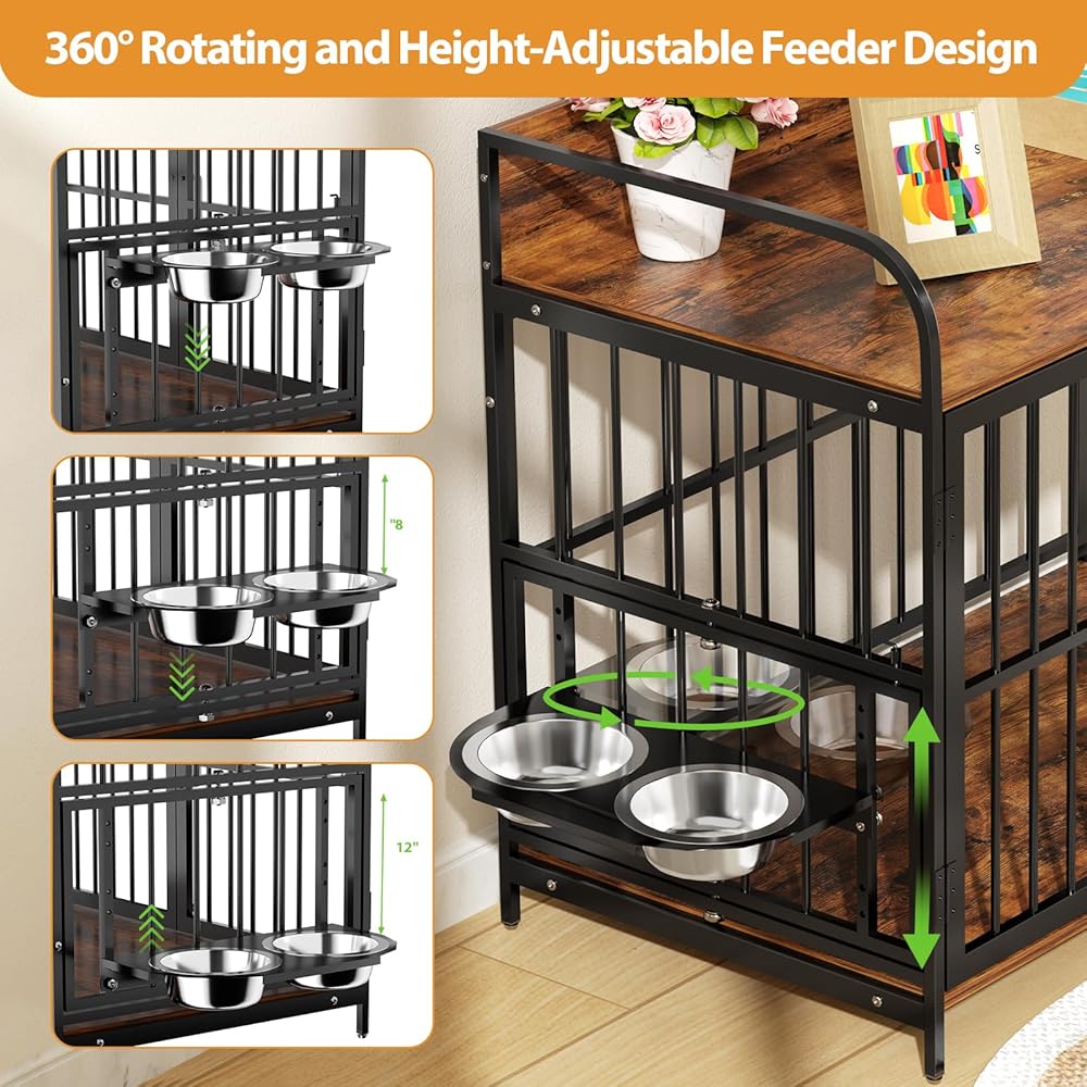 تصميم مخصص: يشتمل على وحدة تغذية للكلاب قابلة للدوران بزاوية 360 درجة وقابلة لضبط الارتفاع ووعائين من الفولاذ المقاوم للصدأ لتسهيل التغذية داخل الصندوق أو خارجه ومنع إصابات ظهر الكلب. كما يأتي مع بساط قفص قابل للغسل، مما يوفر لحيوانك الأليف مساحة آمنة ومريحة أقرب إلى الحياة العائلية