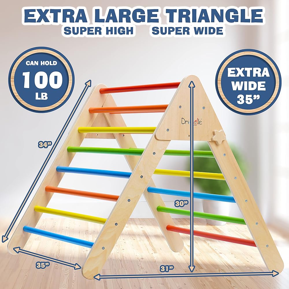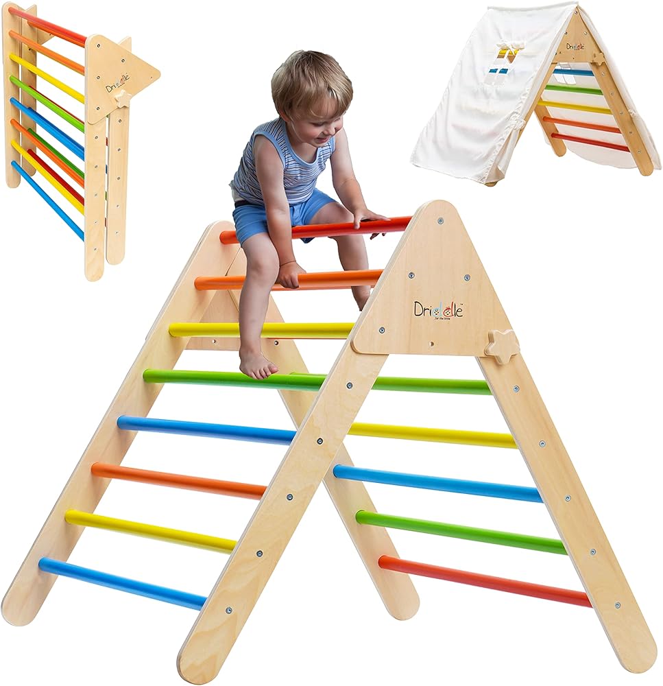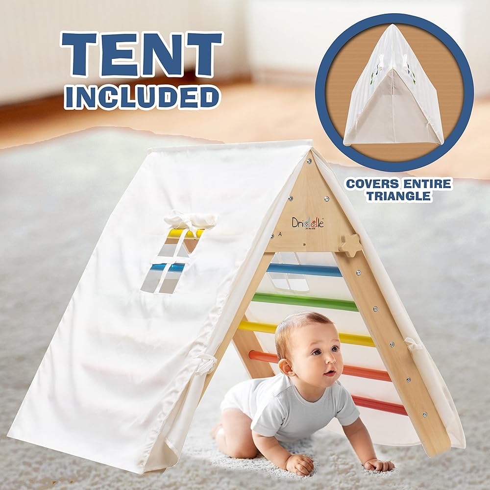 دريدل مثلث تسلق مع خيمة - العاب تسلق خشبية للاطفال الصغار والرضع - متسلق ملون قابل للطي لصالة الالعاب الرياضية الداخلية للاطفال - امنة بنسبة 100% - معتمدة من قانون تحسين سلامة المنتجات الاستهلاكية -