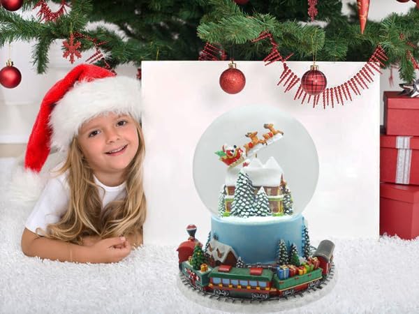 كرة مائية موسيقي من البولي راتنج مقاس 120 ملم بحركة مزدوجة. كرة مائية موسيقية من هاوس اند ترين مع قطار داخلي وخارجي يدور مع الموسيقى.