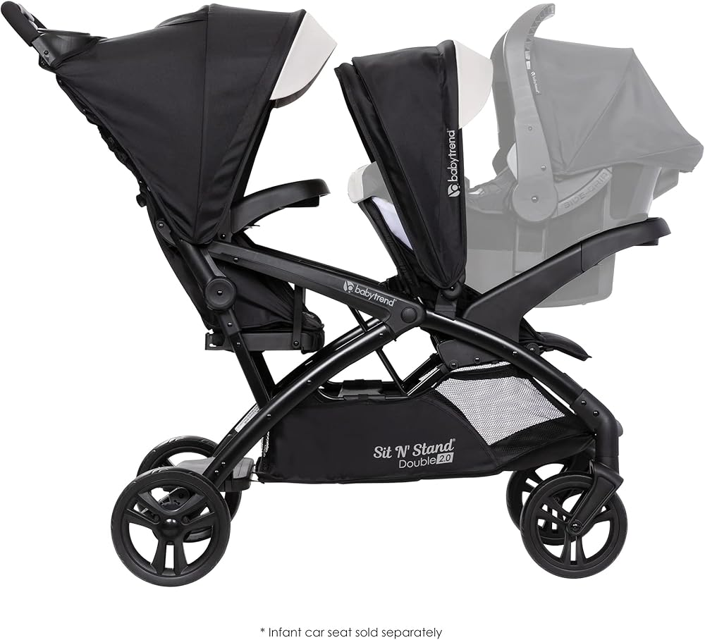 • Children can sit in the front and rear seats of the stroller or stand on the rear platform, this stroller is compatible with Baby Trend car seats; Maximum weight capacity recommendation is 50 pounds