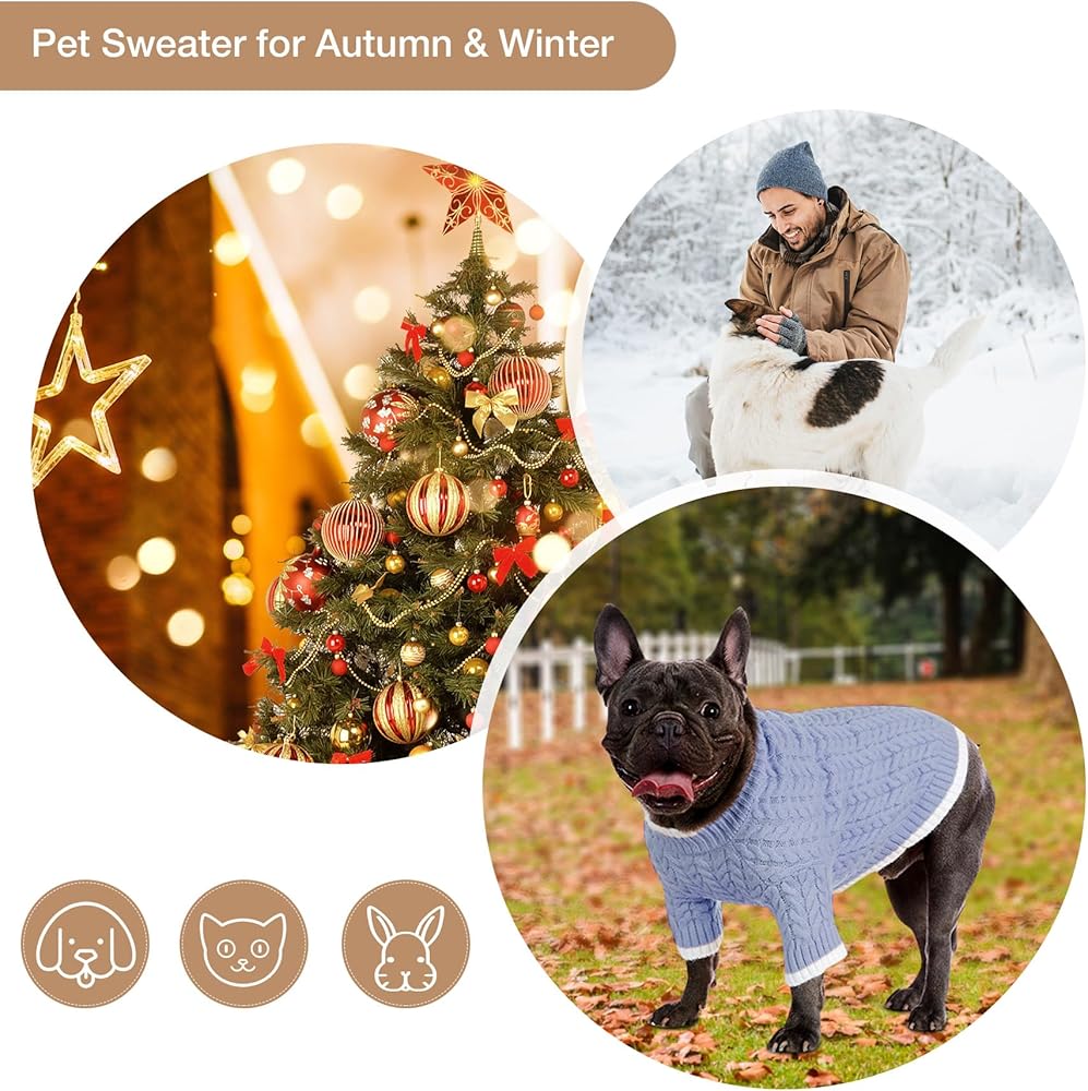 سترة قطة من الصوف ذات الياقة المدورة، ملابس للكلاب في عيد الميلاد للكلاب الصغيرة جدًا والبنات والأولاد، ملابس عطلة دافئة سميكة محبوكة لطيفة للجرو والقطط، Dustyblue XS
