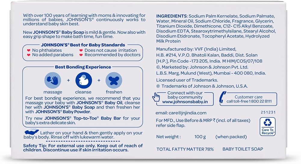 • In new easy grip shape , Every Johnson's product passes a 5 level safety assurance process