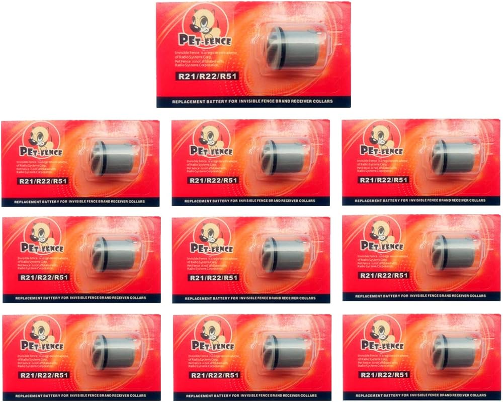 سياج الحيوانات الأليفة متوافق مع بطارية السياج غير المرئية لطوق الكلاب، بطاريات لأطواق الكلاب، غطاء طاقة العلامة التجارية للسياج غير المرئي R21، R22، R51، أطواق ميكرولايت آمنة ومتينة (10 عبوات)