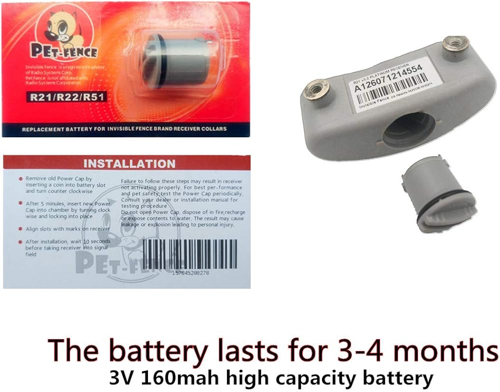 • 3:It's 100% compatible dog invisible fence battery r21 r22 r51 andMicrolite, and you only need a coin to installand remove it very easily. Each one is strictly tested to make sure it doesn't fall.