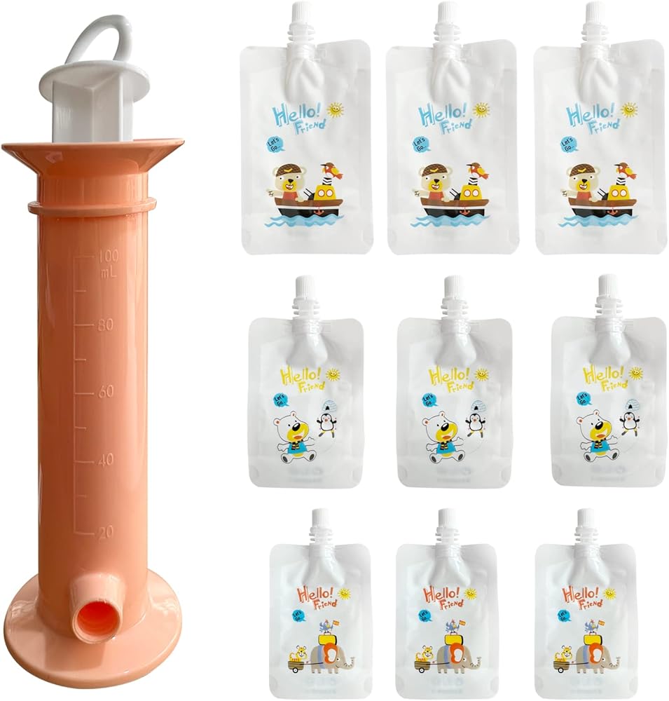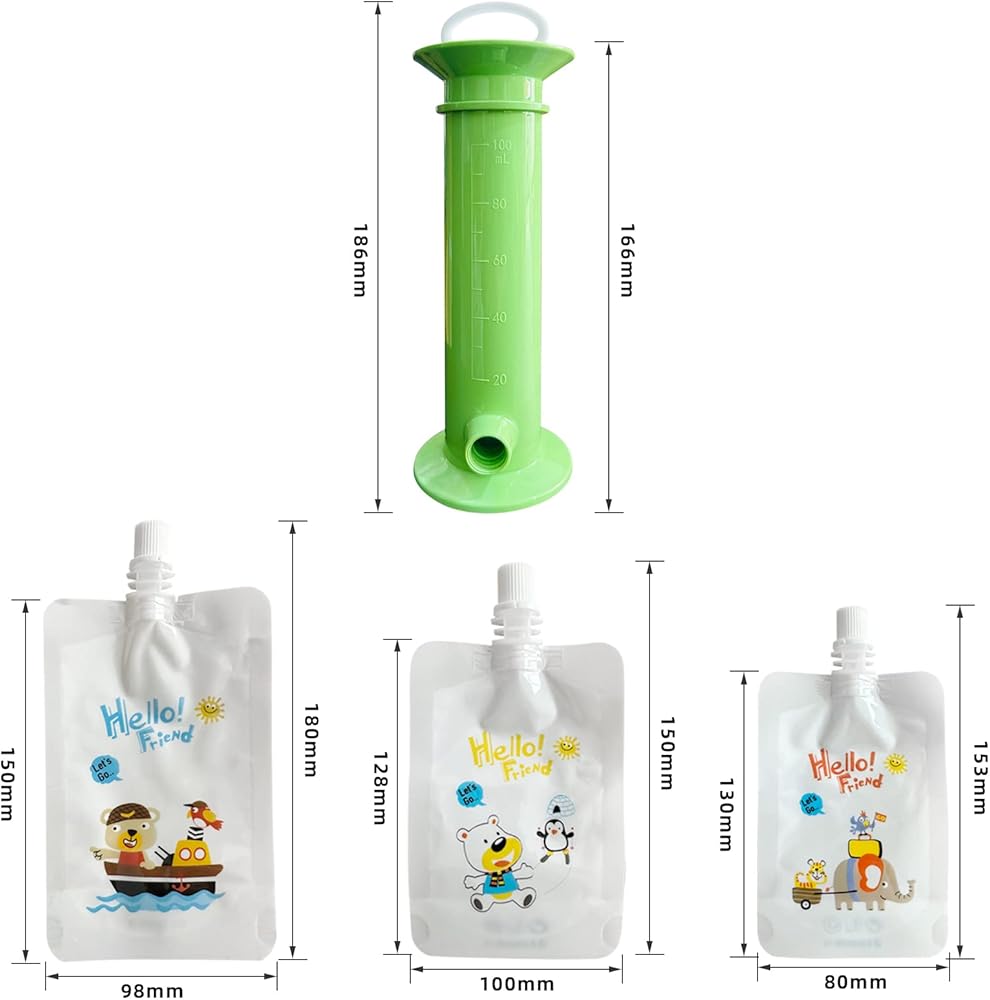 • 【سهلة التنظيف】 عندما تتسخ، يمكنك بسهولة تنظيف الأكياس عن طريق وضعها في غسالة الأطباق. كما أنها آمنة للاستخدام في الفريزر، مما يسمح لك بتجميد الطعام والحفاظ عليه طازجًا حتى يصبح طفلك جاهزًا لتناول الطعام.