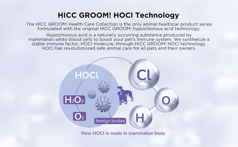 حول هوسي. توجد في خلايا الدم البيضاء لدى جميع الثدييات كأداة طبيعية ضد الأجسام الغريبة. مضاد للالتهابات للعناية بالفم للحيوانات الأليفة، وفعال في إزالة تراكم الجير والجير، ويزيل رائحة الفم الكريهة. يختلف عن ماء التبييض (NaClO).