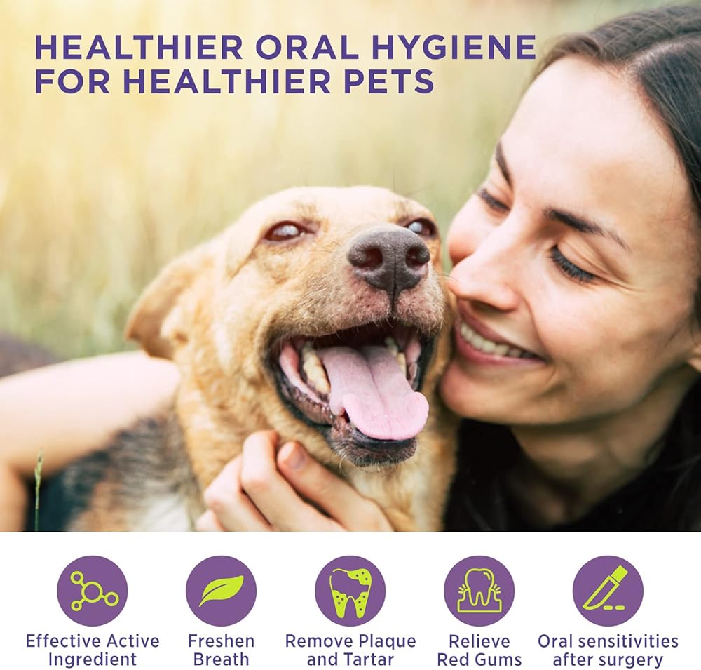 نفس منعش. تم تركيبه باستخدام مكونات نشطة متقدمة (HOCI)، ودرجة حموضة متوازنة، ويمكنه تخفيف احمرار اللثة لدى الحيوانات الأليفة وتراكم الجير وتراكم الجير لمحاربة رائحة الفم الكريهة لدى الحيوانات الأليفة. دعم علاج التهاب اللثة في الكلاب.