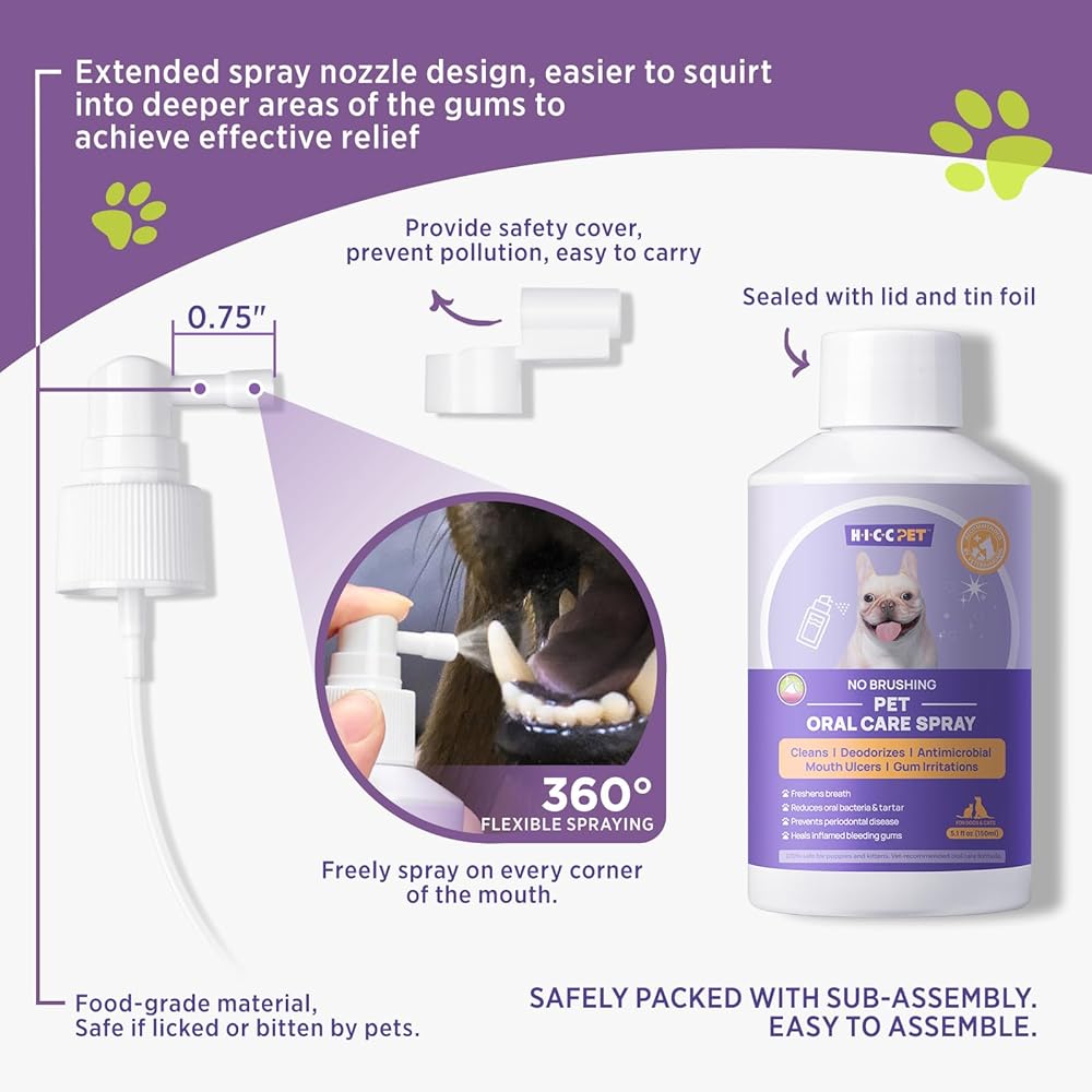 طقم تنظيف أسنان الكلب المصنوع. يحتوي رذاذ أنفاس الكلاب الخاص بنا على فوهة ممتدة على عكس الأنواع الأخرى، والتي يمكن أن تتدفق إلى اللثة العميقة لمضادة للالتهابات وإزالة رائحة الفم الكريهة. علاج رائحة الفم الكريهة للكلاب. تقديم تجربة ممتعة لك ولحيواناتك الأليفة.