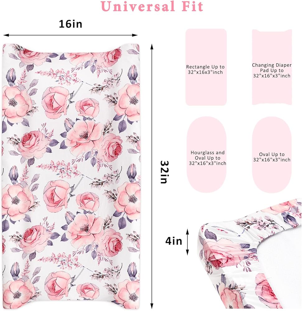 ❤【ملاءمة مثالية】- ملاءة طاولة تغيير الحفاضات هذه قابلة للتمدد، بمقاس قياسي 81.28 سم × 40.64 سم، ويمكن تثبيتها بإحكام على معظم طاولات تغيير حفاضات الأطفال القياسية وفراش السرير ومراتب المهد.