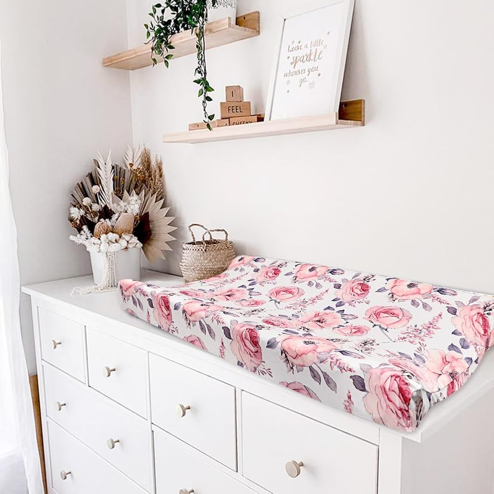 ❤【سهلة التركيب】- يمكن للشريط السفلي المرن أن يناسب وسادة تغيير الحفاضات بشكل سلس، ويمكنك وضع ملاءة طاولة التغيير على وسادة تغيير الحفاضات في غضون ثوانٍ والحفاظ على غطاء وسادة تغيير الحفاضات في مكانه.