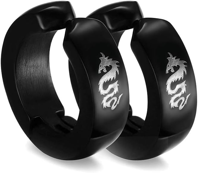 Mgutillart Punk Rock الفولاذ المقاوم للصدأ مشبك على شكل تنين على الأقراط (أسود)