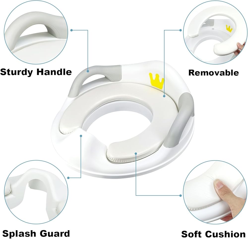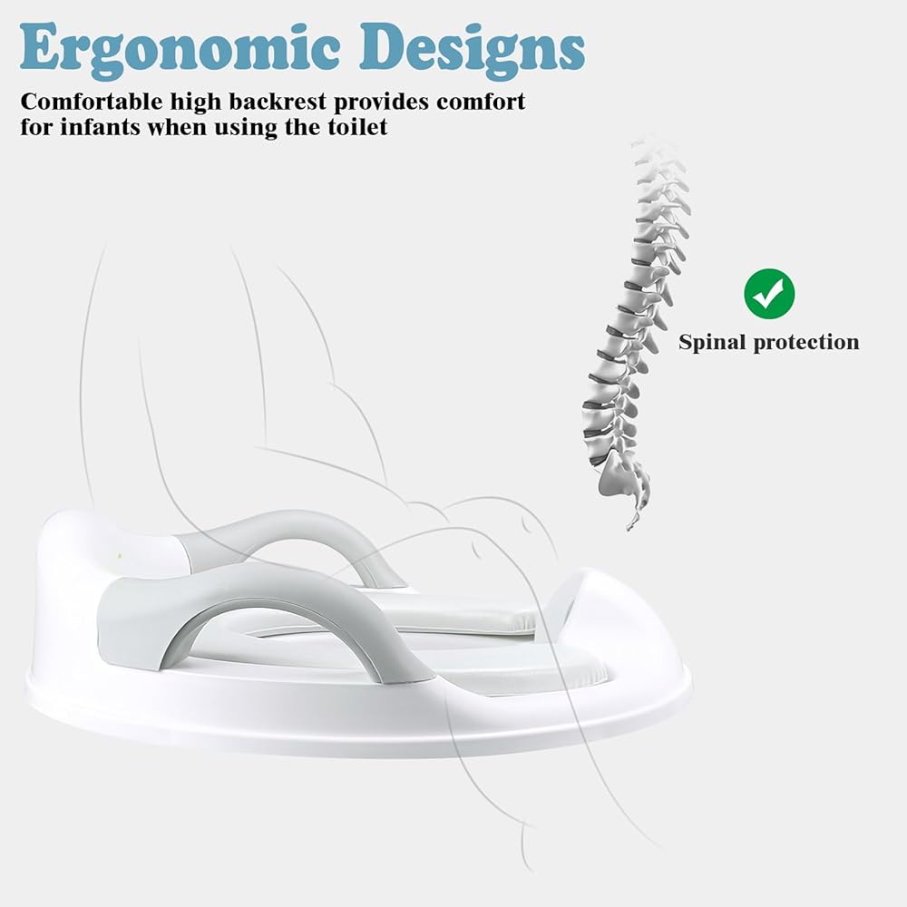 تصميم مريح: يأتي مقعد المرحاض التدريبي المضاد للانزلاق هذا مع مسند ظهر مرتفع، والذي يمكن أن يعزز وضع المرحاض الصحيح ويساعد الأطفال على الانتقال إلى مرحاض البالغين؛ توفر المقابض الجانبية الثبات، مما يقلل من خوف الطفل، ويمكن للوسادة الناعمة أن تحمي الأرداف الصغيرة للطفل.