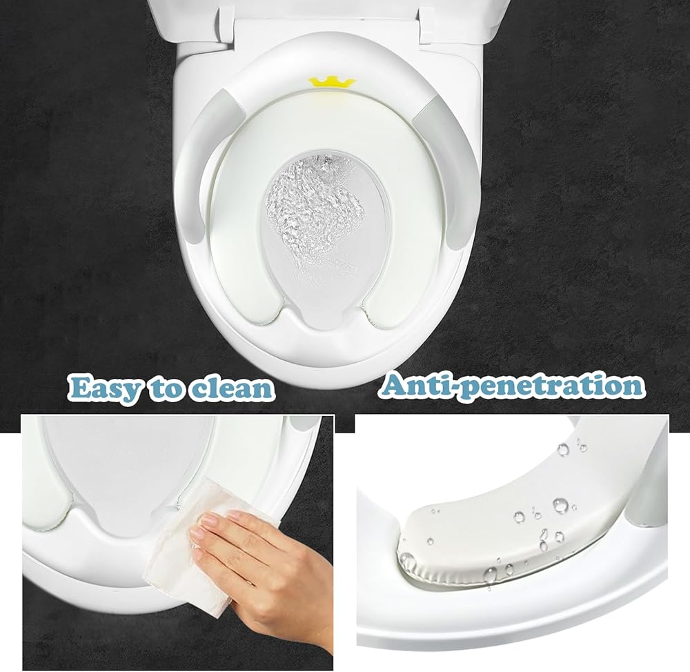 سهل التنظيف: تم تجهيز مقعد المرحاض للتدريب على استخدام المرحاض بلوحة رش مدمجة لمنع تناثر البول والأوساخ على الأرض؛ وسادة مقعد ناعمة قابلة للفصل لسهولة الإزالة والتنظيف. بعد الاستخدام، يمكن شطفه مباشرة بالماء.