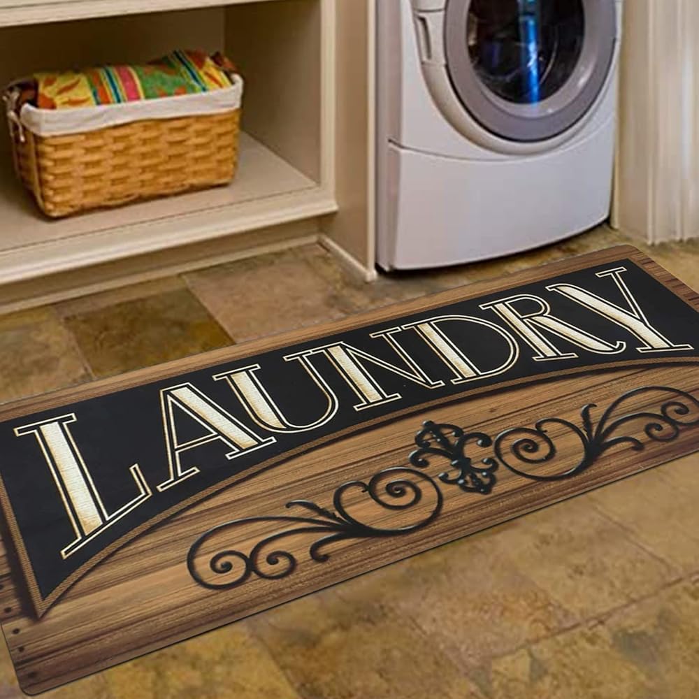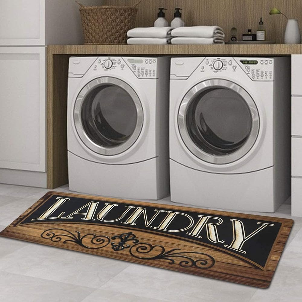 【مادة عداء سجادة غرفة الغسيل】: سطح متدفق بظهر مطاطي. مقاس كبير: 20 بوصة × 59 بوصة (50 سم × 150 سم). سمك: تقريبا. سجادة أرضية مبطنة ثقيلة الوزن 2.5 مم، مريحة للوقوف عليها. كبيرة بما يكفي لكل من الغسالة والمجفف.