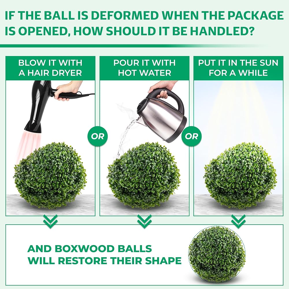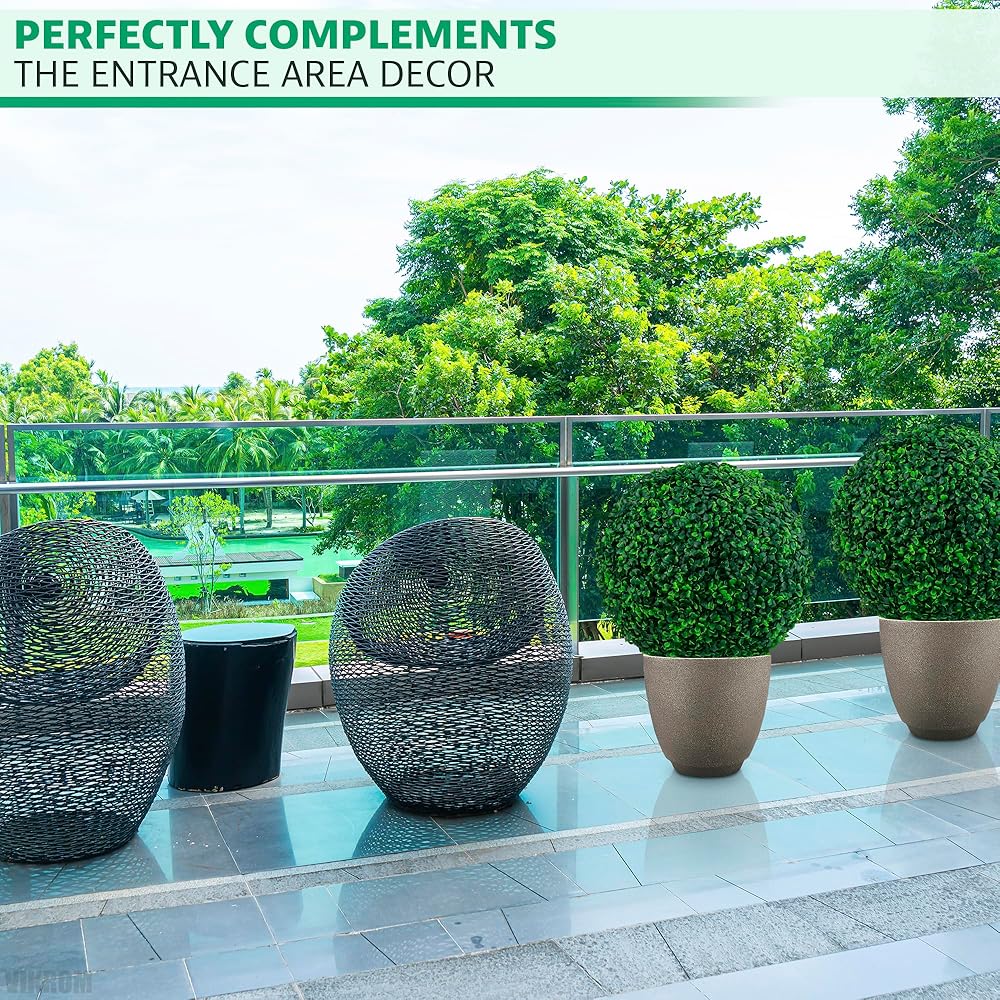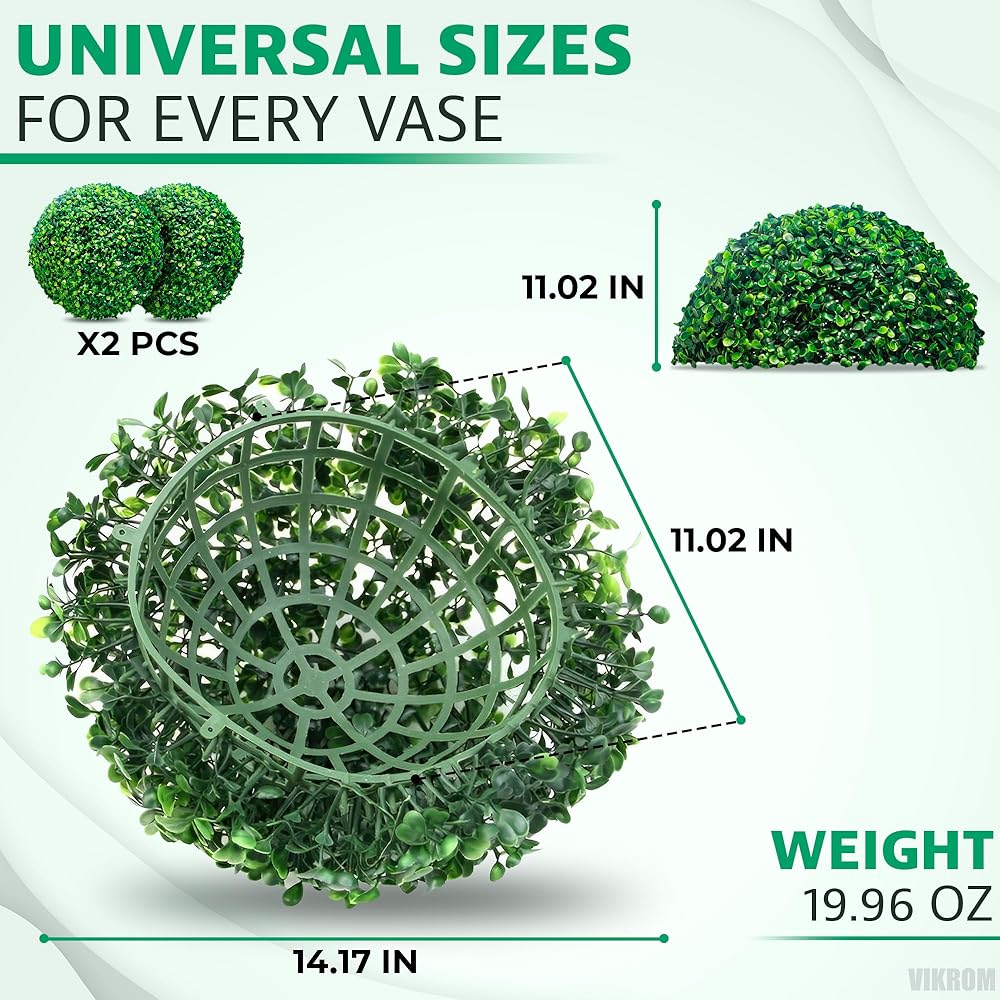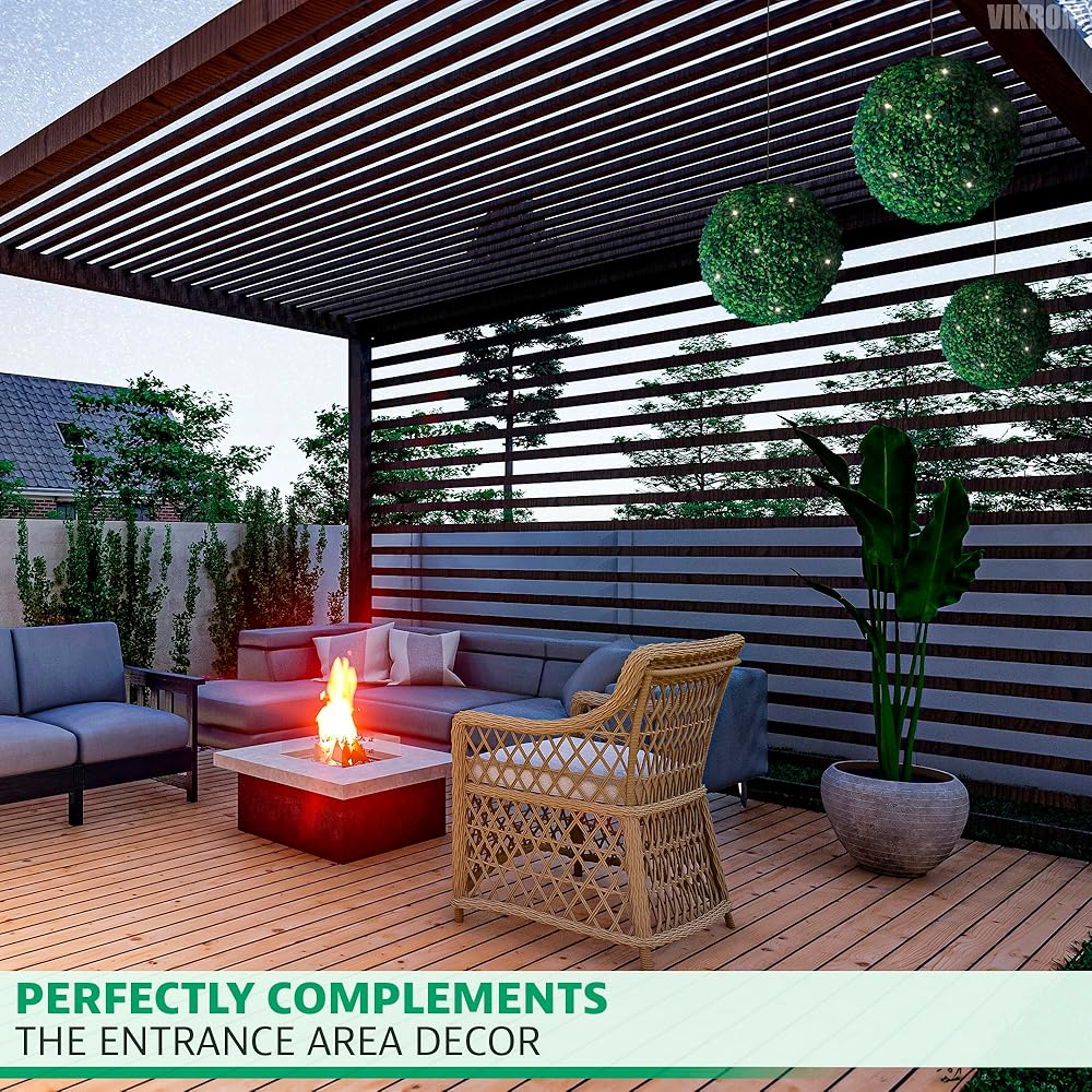 Vikrom Green Artificial Boxwood Wall Garden Ball Faux Topiary Indoor Decorative Balls for Centerpiece Bowls: The boxwood wall artificial plants for outdoor decor is made of high quality plastic by modern technology. These faux boxwood topiary balls look the same as the real but more long-lasting than it. These outdoor plants artificial for porch are perfect for both indoor and outdoor decor. These artificial plants for home decor outdoor are bushy, bright green leaves with clear texture, realistic leaves, evenly-trimmed shape and natural color, adding more life to your space but without maintenance, watering or trimming needed like real plants. The artificial topiary ball is the perfect decoration for home entrance, living room, balcony, reception area, decorative balls for bowls, office, party, wedding and more. These faux topiary outdoor boxwood balls can be widely used in wedding, balcony, porch, party, reception, backyard, living room, patio, office room, wall ways, etc. Specifications: Material: Plastic Color: Green Size: inner diameter: 11.41 inches, outer diameter: 15.74 inches Package Contents: 2 x Artificial Boxwood Plant Ball Note: Light Shooting And Different Displays May Cause The Color Of The Item In The Picture A Little Different From The Real Thing. The Measurement Allowed Error Is /- 1-3cm.