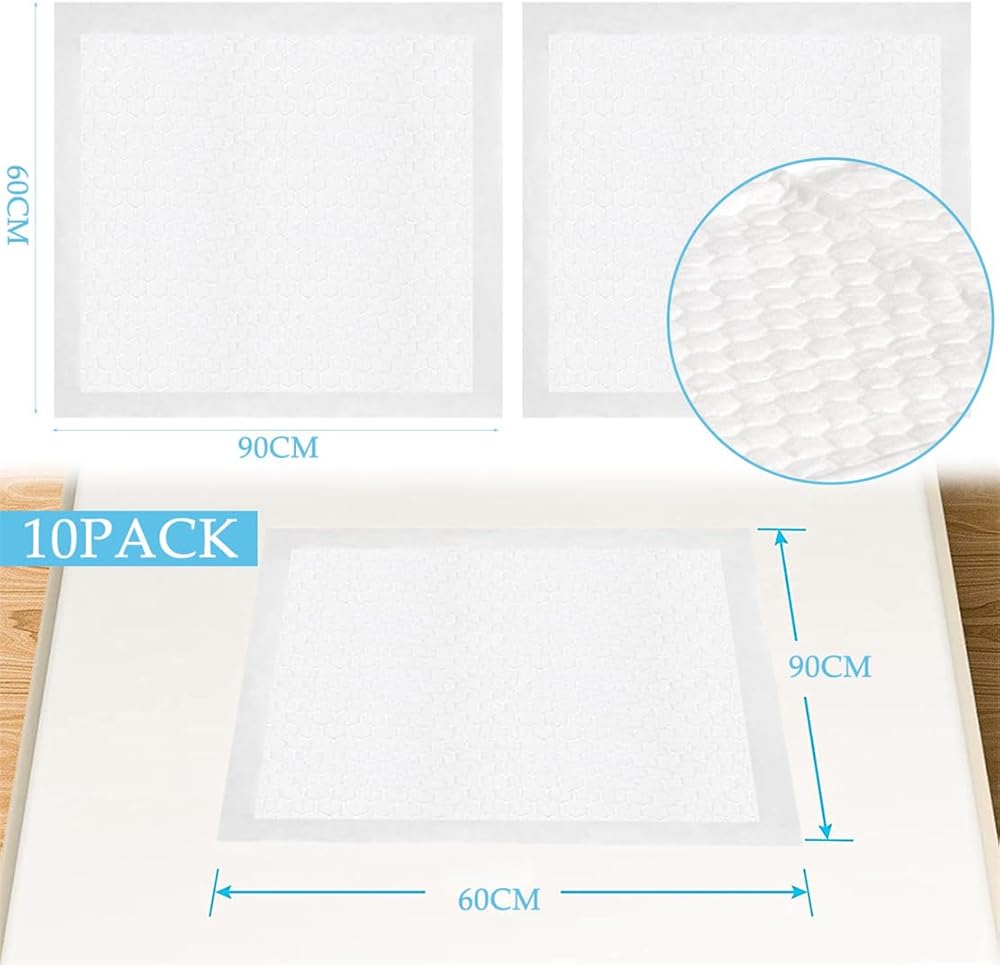 وسادات سرير كبيرة للاستعمال مرة واحدة، مكونة من 10 قطع مقاس 60 × 90 سم، وسادة تغيير الحفاضات، مفارش سرير فائقة الامتصاص لكبار السن والبالغين والأطفال والحيوانات الأليفة