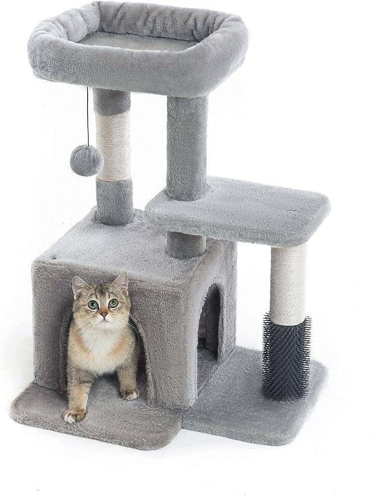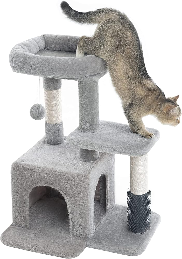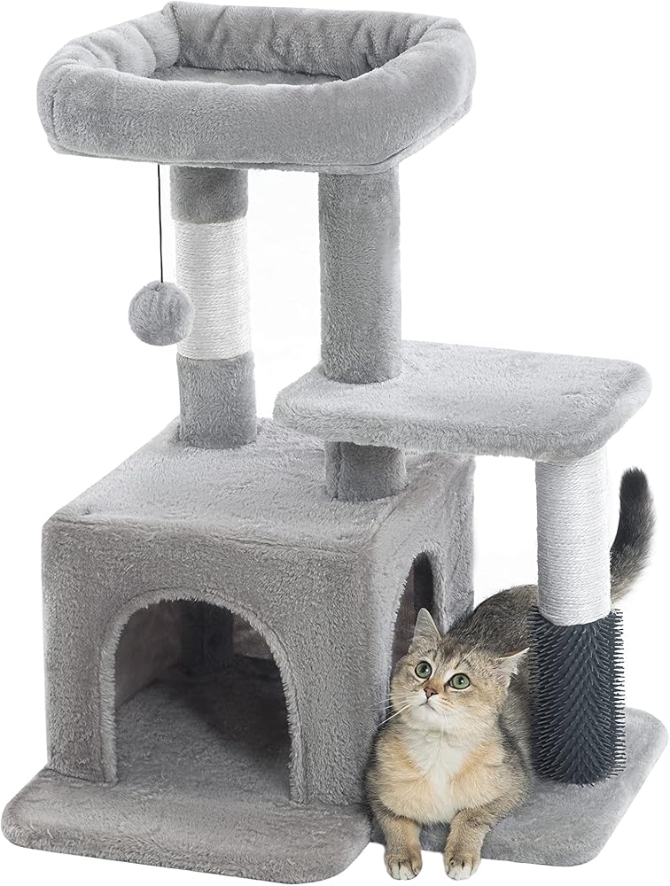 MULTI_FUNCTION: This 29 Inches multi-level cat tree is perfect for your kitty to bounce up and down. Spacious top perch and cozy private condo provide enough spaces for your kittens to take a break or be in a daze for a little bit. It's also equipped with a massage post, your kitty can easily groom and scratch himself.