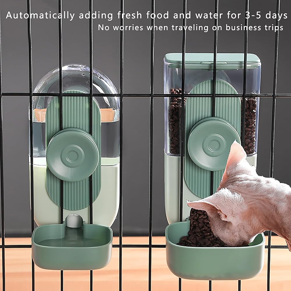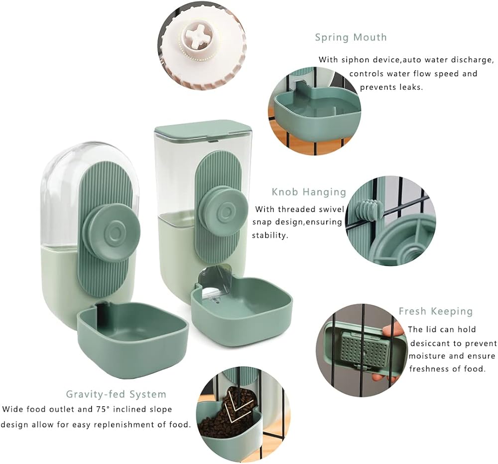 • 【Big Capacity】: The capacity of the water dispenser is 800ml, and the capacity of the feeder is 870ml. It is a great choice for pet owners who want to provide their pet with both fresh food and water when busy and go out. Perfect for medium small animals, such as cat, chinchilla, rabbit, chinchilla, guinea pig, hedgehog, and ferret.