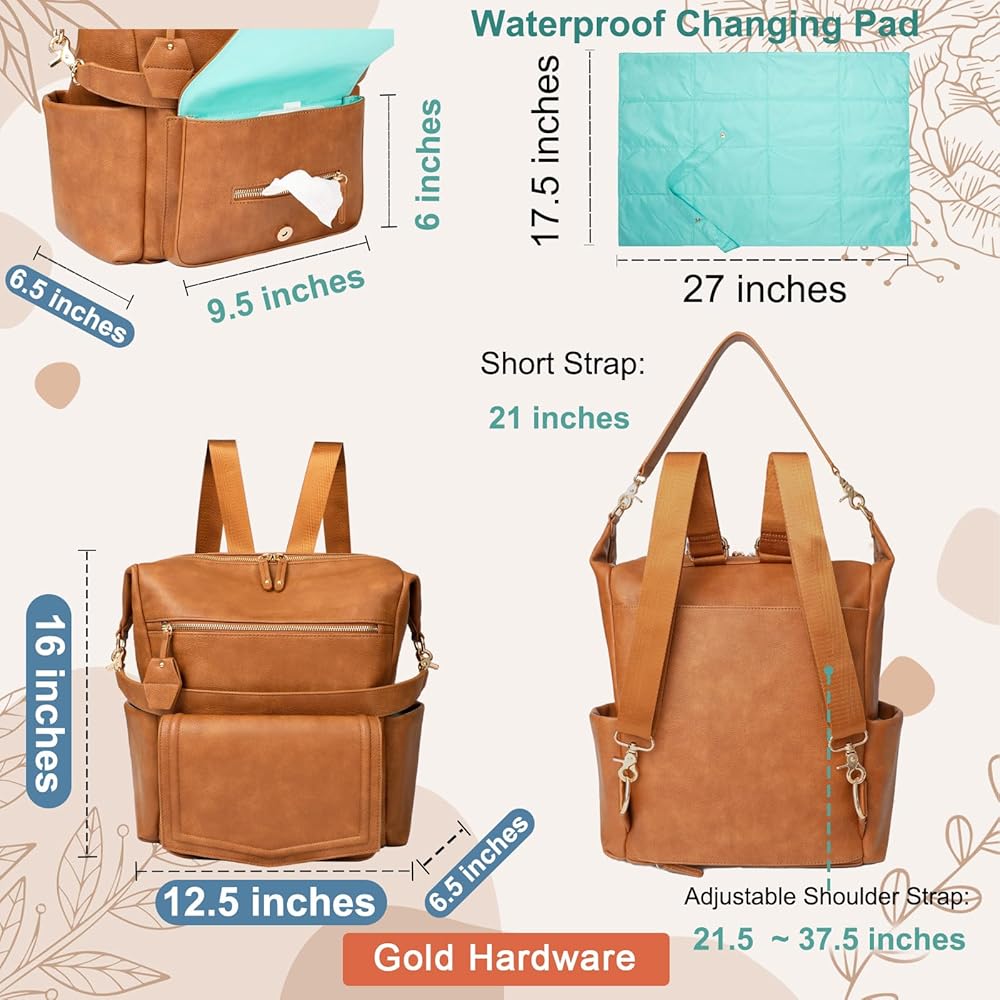 ❤️[حجم مثالي، سعة كبيرة] ★الحجم: (الطول × العرض × الارتفاع) 12.5 × 6.5 × 16 بوصة. الوزن: 3 رطل. مقاس وسادة التغيير 27 × 17.5 بوصة. حزام كتف قابل للتعديل (21.5-37.5 بوصة). وجيب أمامي بغطاء يحافظ على مناديل الأطفال المبللة.