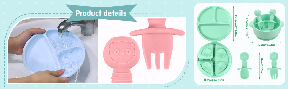 • مصممة للأطفال: تم تصميم مجموعة أدوات تناول الطعام للأطفال الصغار خصيصًا لتناسب فم الطفل وأيديه الصغيرة. مصنوع من السيليكون الفاخر، وهو بديل آمن ومتين للبلاستيك التقليدي