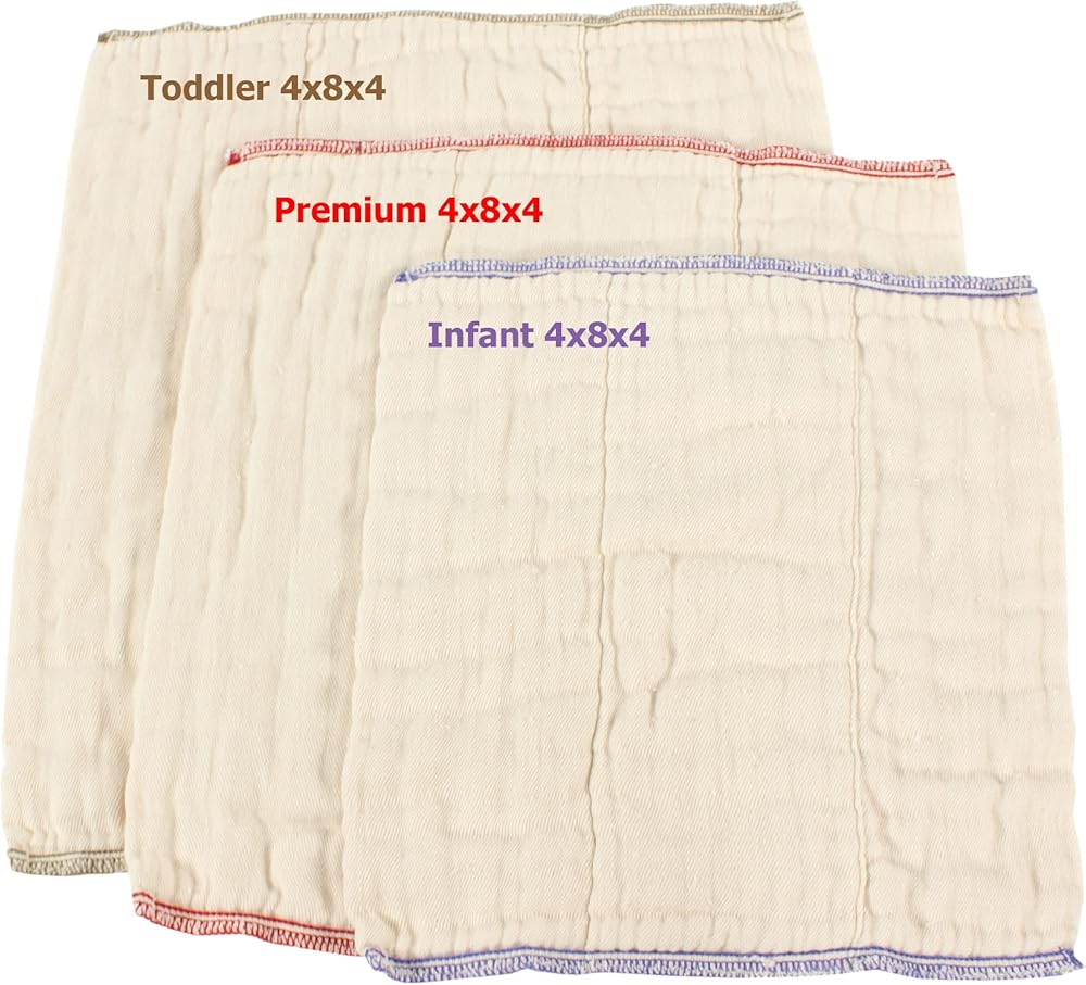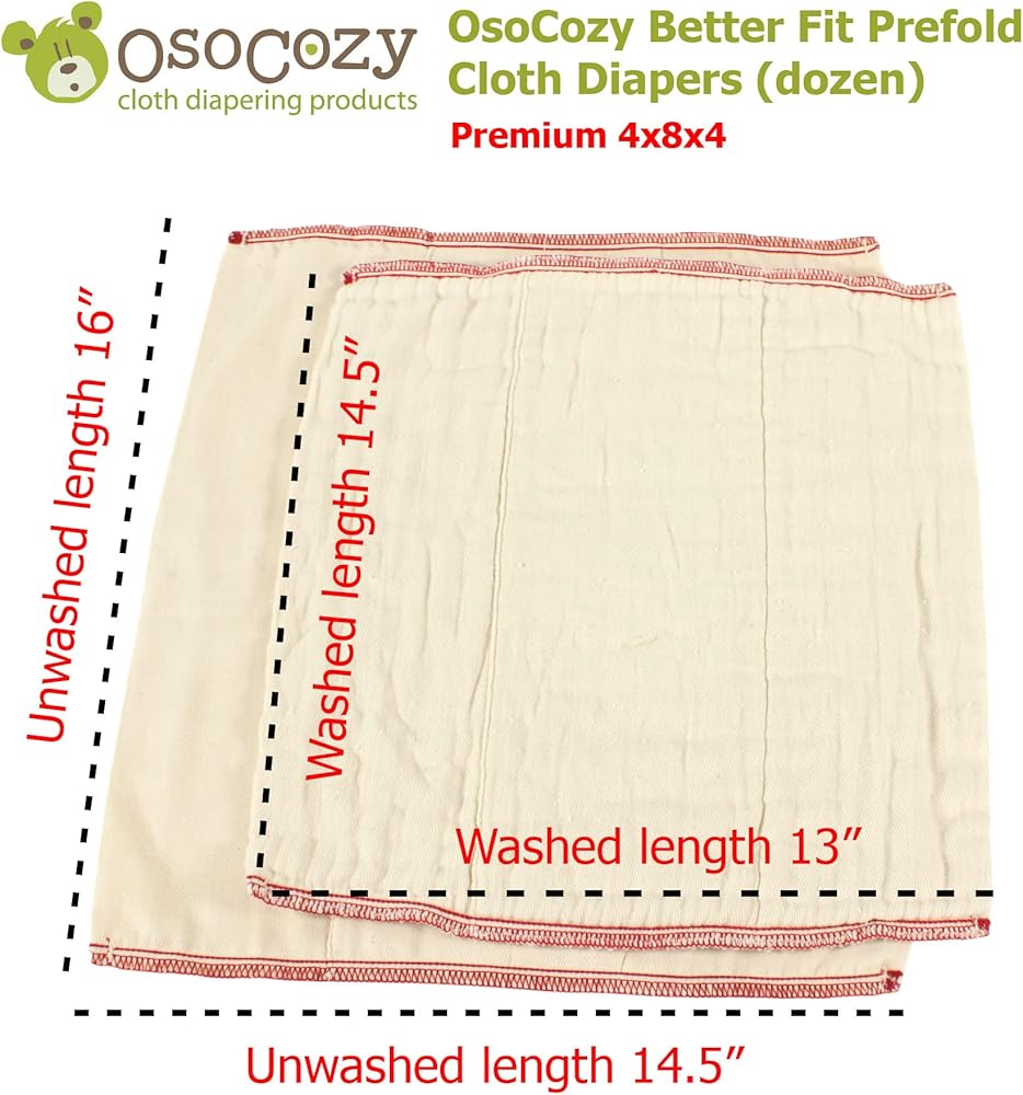 حفاضات OsoCozy القماشية غير المبيضة ذات المقاس الأفضل - 100% قطن، نسيج الشاش، مقاس قابل للطي ثلاثي - مقاس 2 - (ممتاز 4x8x4 يناسب 14-30 رطل) - دزينة واحدة
