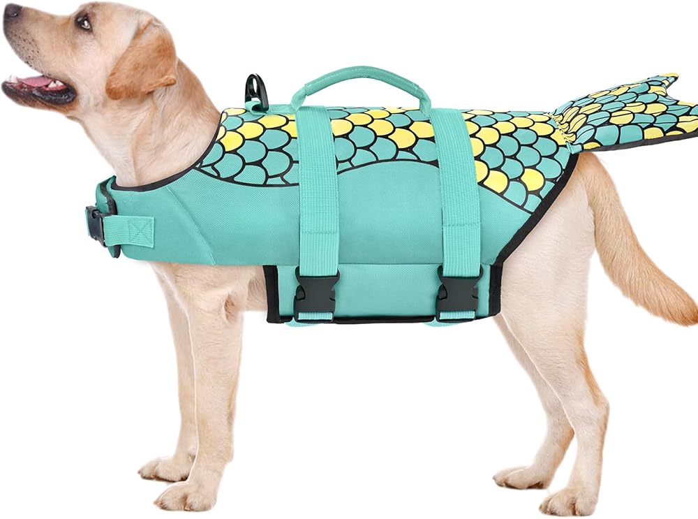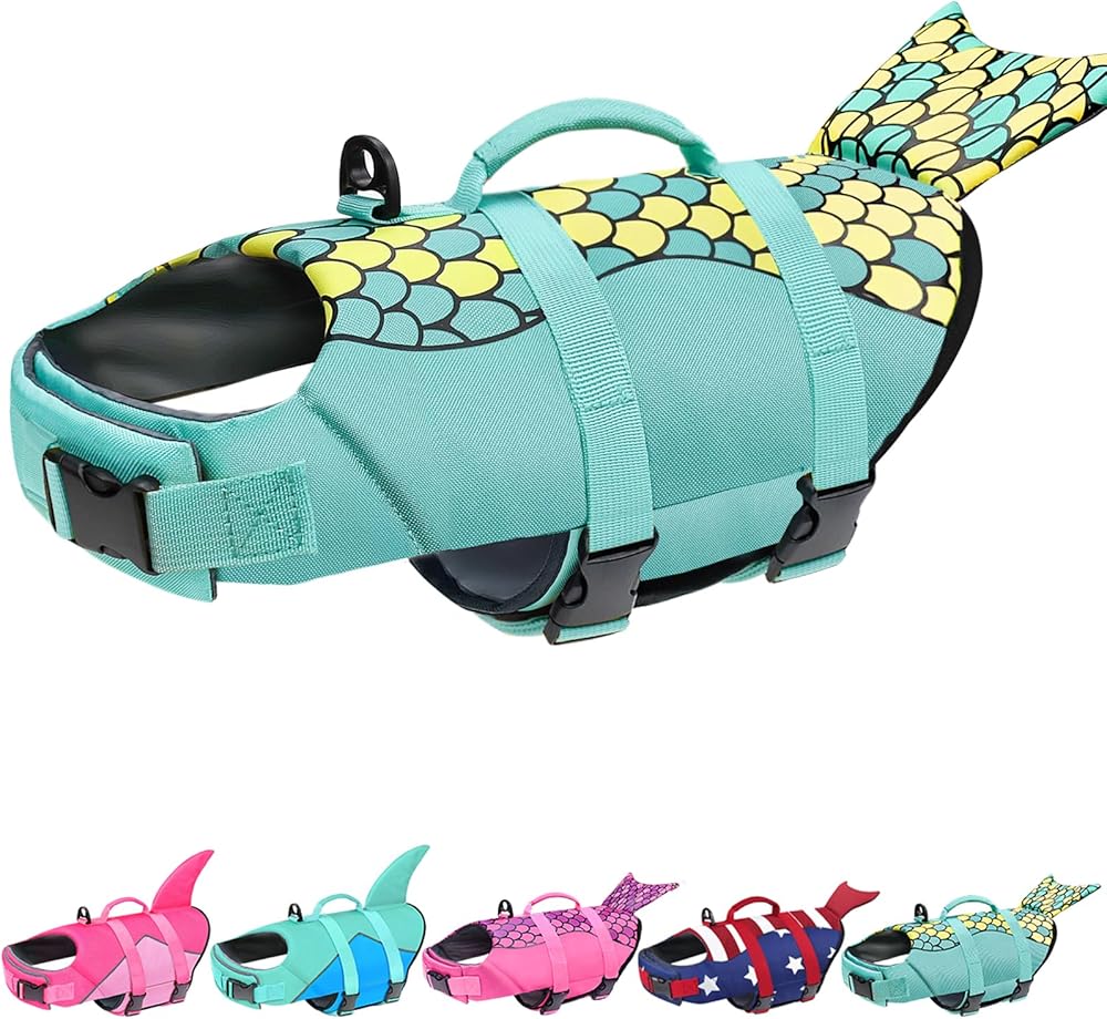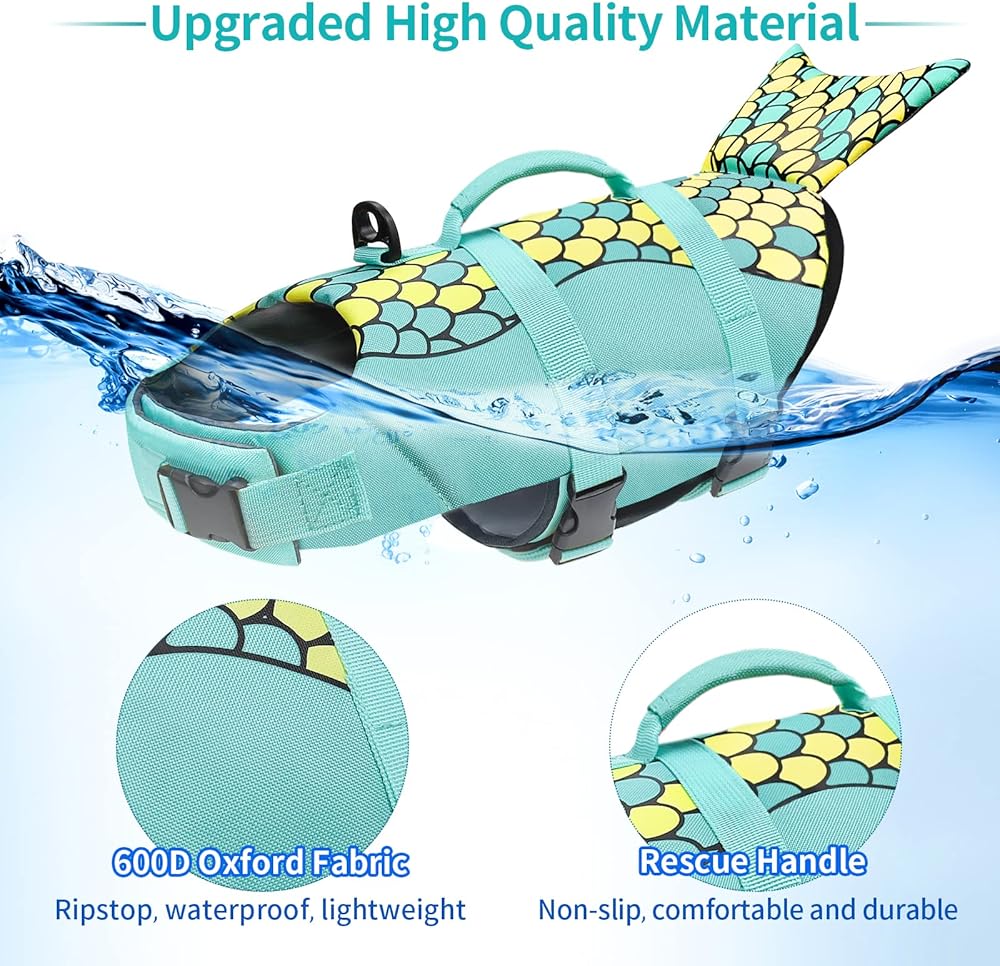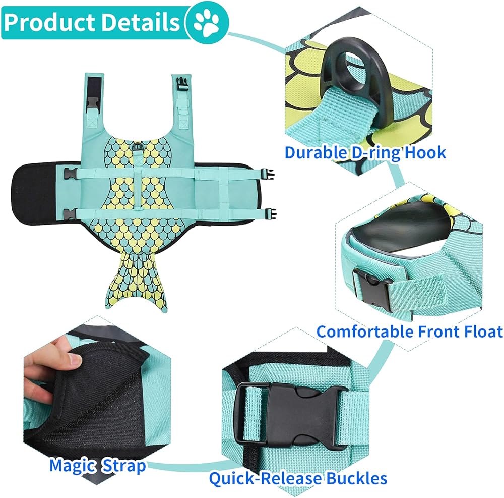 【تصميم فريد من نوعه على شكل العلم الأمريكي】تتميز سترة النجاة الخاصة بنا بتصميم مميز يشبه حورية البحر مع شعار العلم الأمريكي، مما يضيف عنصرًا فريدًا لهذه السترة. يوفر شكل حورية البحر المثير للاهتمام والألوان النابضة بالحياة رؤية أعلى في الماء. وفي الوقت نفسه، فإن النمط الساحر سيجعل حيوانك الأليف المحبوب نجمًا عند ممارسة أنشطة الرياضات المائية.