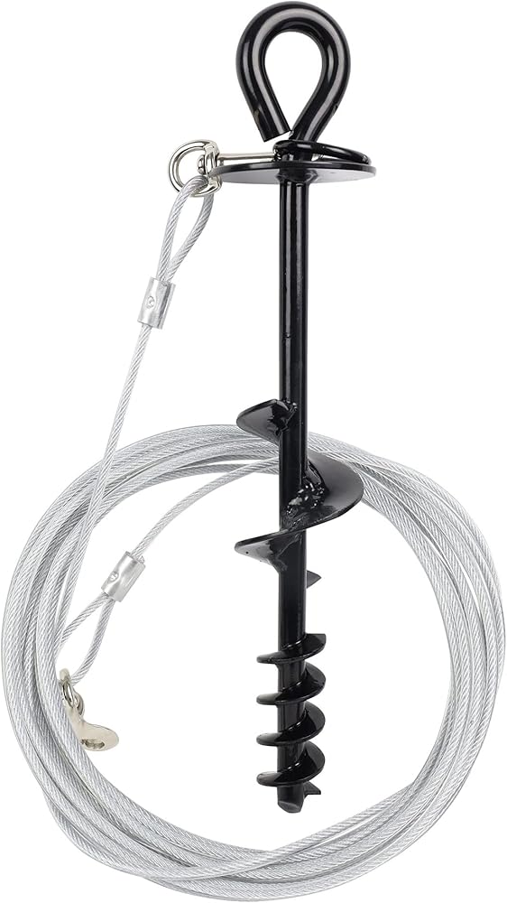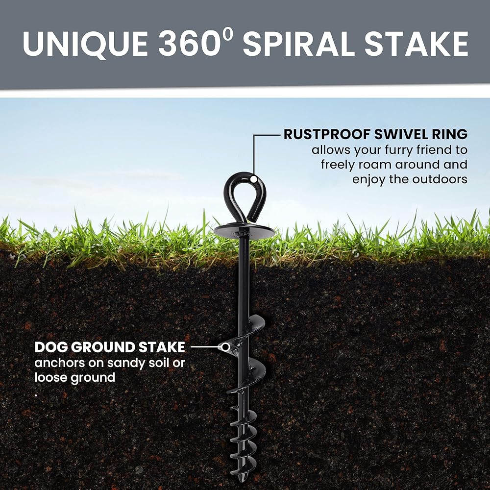 أوتاد حلزونية فريدة 360 درجة - تتميز أوتاد ساحة الكلاب الخاصة بنا بحلقة دوارة 360 درجة ومقاومة للصدأ. تسمح لصديقك المكسو بالفراء بالتجول بحرية والاستمتاع بالهواء الطلق. يتم تثبيت الوتد الأرضي للكلب على التربة الرملية أو الأرض الرخوة.