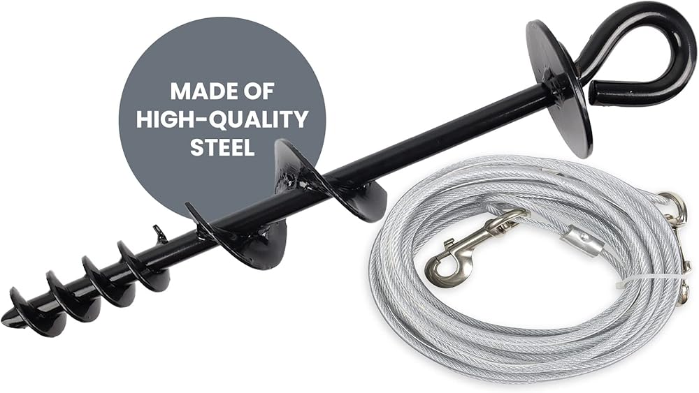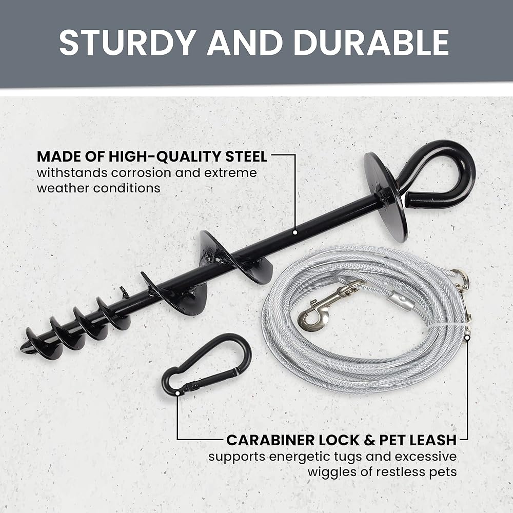 يحافظ على سلامة كلابك في الهواء الطلق - استخدم مجموعة الكابلات والأوتاد هذه لحظات ربط خالية من المتاعب مع كلبك. تتضمن كل عملية شراء أوتاد كلاب شديدة التحمل وفرشاة تنظيف وسلسلة كلاب يمكنك إحضارها أينما ذهبت!
