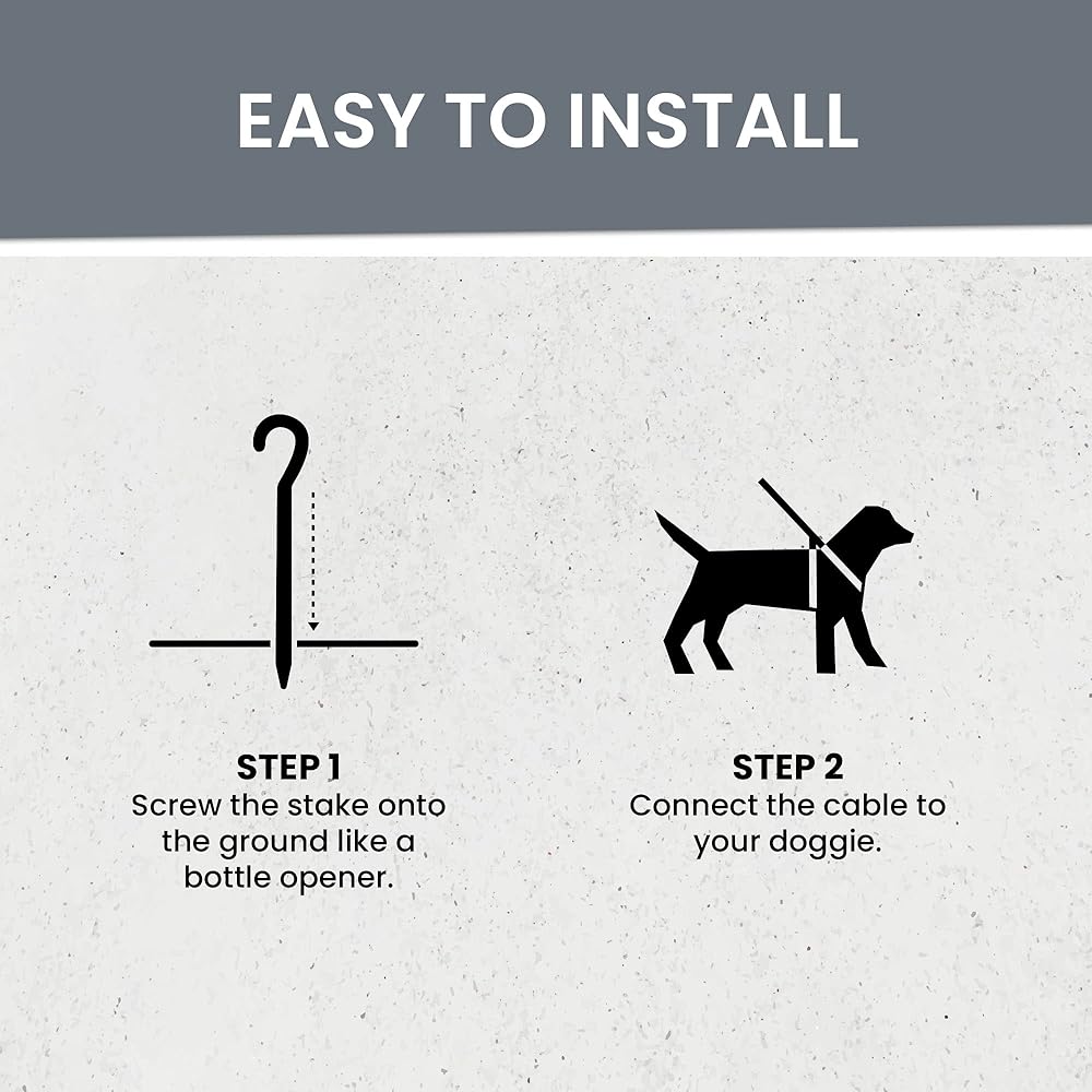 سهل التركيب - التصميم الأنيق والمريح لأربطة وأوتاد توب دوج يجعل من السهل استخدامها في أي مكان. ببساطة قم بتثبيت الوتد على الأرض مثل فتاحة الزجاجات وقم بتوصيل الكابل بكلبك.