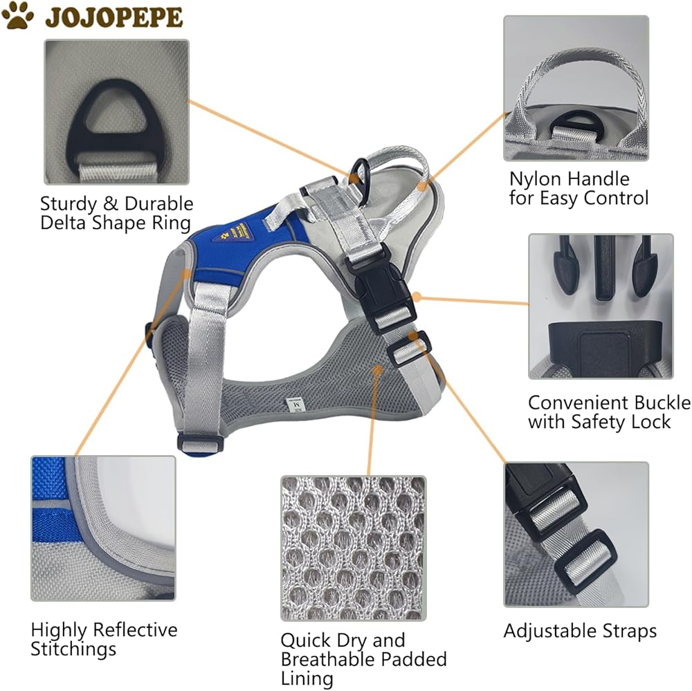 سرج للكلاب، سرج للحيوانات الاليفة بدون سحب، سترة كلاب مبطنة ناعمة قابلة للتعديل، سترة اكسفورد عاكسة مضادة للاختناق مع مقبض سهل التحكم