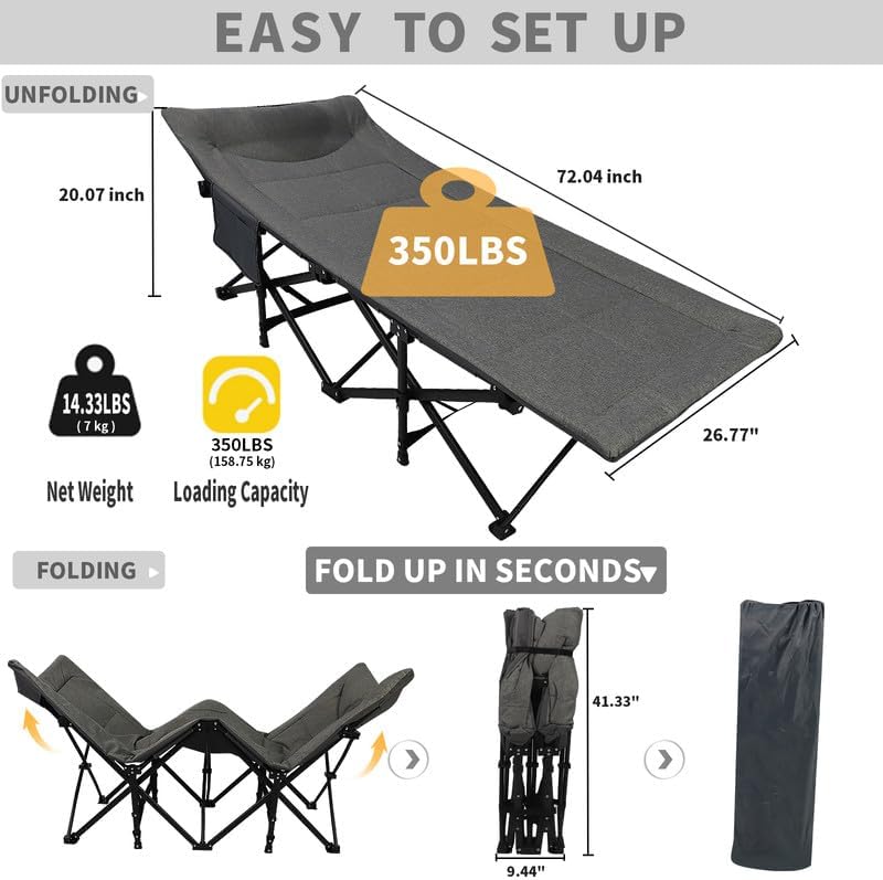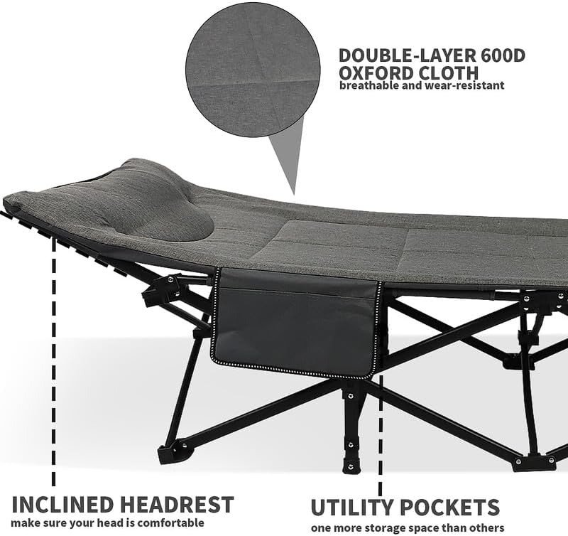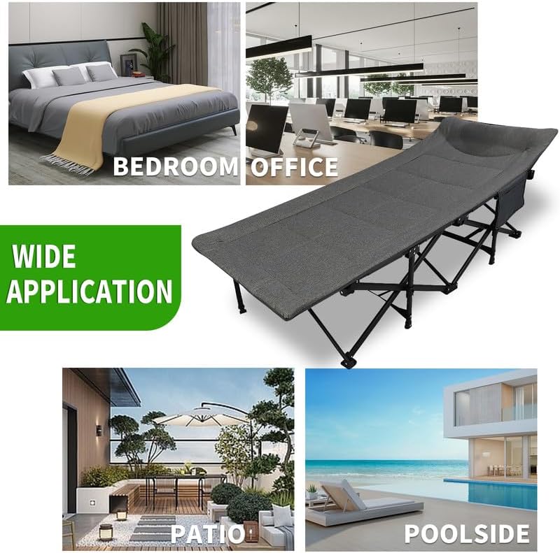 • 𝐏𝐎𝐑𝐓𝐀𝐁𝐋𝐄 𝐀𝐍𝐃 𝐂𝐎𝐍𝐕𝐄𝐍𝐈𝐄𝐍𝐓: حجم سرير التخييم 73.6x12.9x25.59 بوصة ويزن 14.33 رطلًا فقط s، والجيب الجانبي يوفر مساحة تخزين عند النوم.