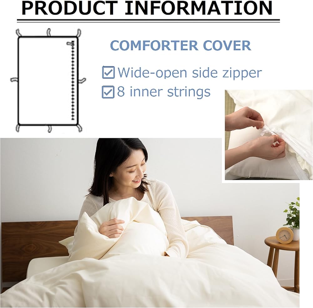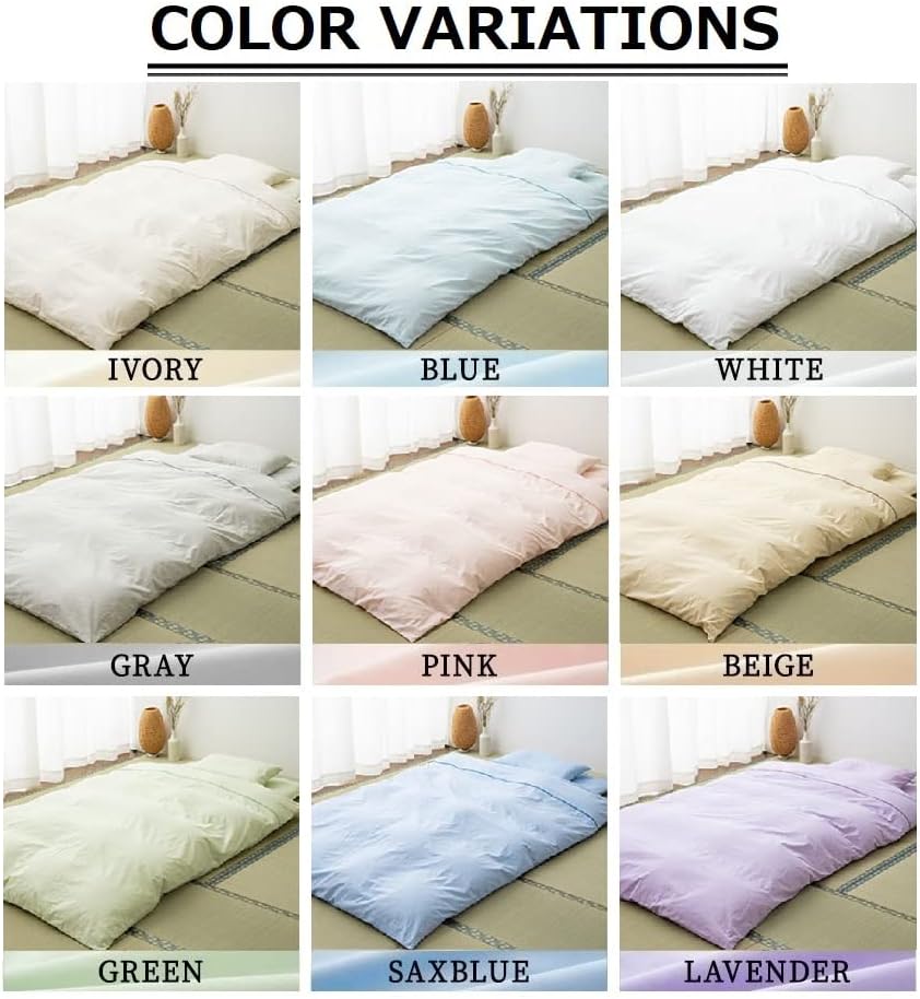 • الأبعاد: 59 × 83 بوصة (150 × 210 سم)، مناسب تمامًا لحاف الفوتون الياباني ذو الحجم المزدوج (كاكيبوتون). المواد: 100% قطن طبيعي (عدد الخيوط 136). المميزات: سحاب YKK واسع الفتح على الجانب الطويل، سهل الارتداء والخلع. 8 خيوط داخلية لتثبيت اللحاف لمنع انزلاقه للداخل.