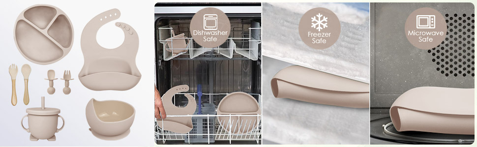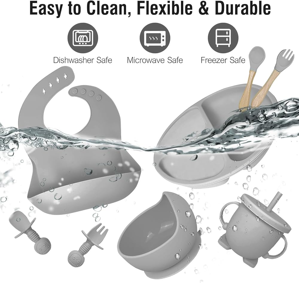 【سهل التنظيف والحمل】السيليكون الممتاز ناعم ولكنه متين لذلك لن تحتاج إلى استبداله بشكل متكرر. تتميز مستلزمات تناول الطعام للأطفال هذه بسهولة التنظيف والشطف والتجفيف بسرعة. جميع الأجزاء آمنة للاستخدام في غسالة الأطباق وآمنة للاستخدام في الميكروويف والفريزر. حرر يديك. ويمكن طيها وحملها في حقيبة، حتى تتمكن من الخروج بأي ضغط.