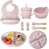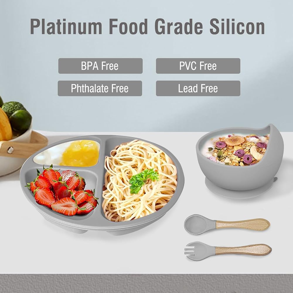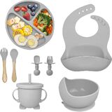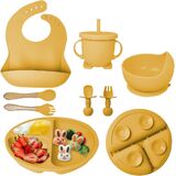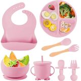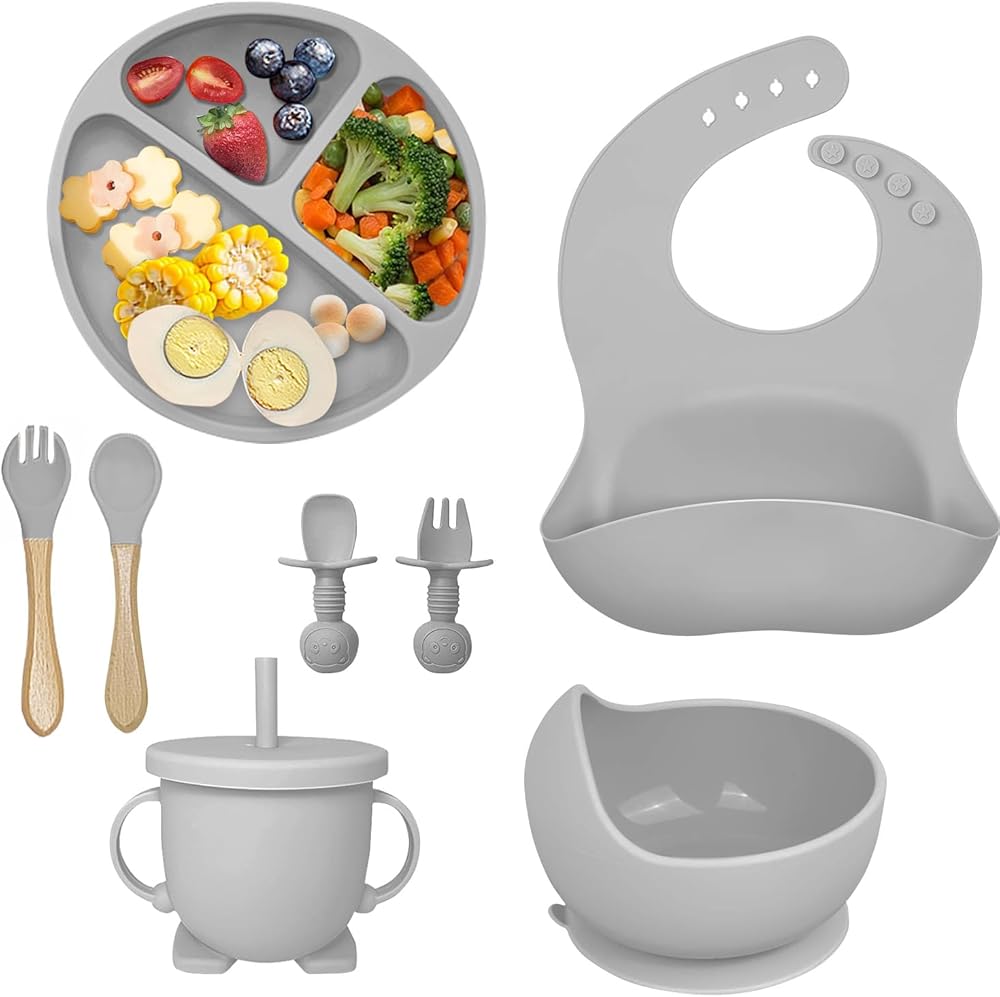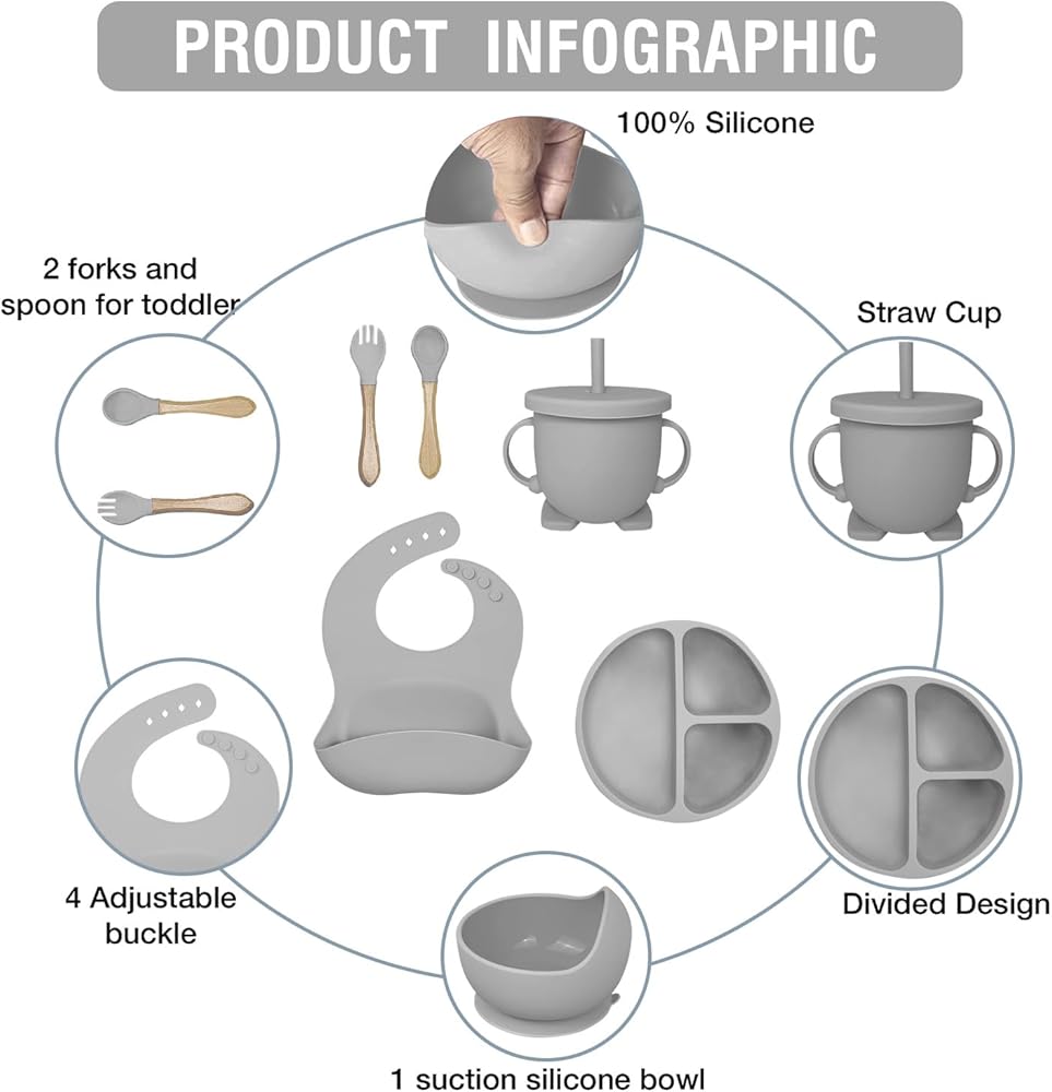 【8 قطع من أدوات مائدة الأطفال المصنوعة من السيليكون】يأتي طبق الأطفال الخاص بنا مع كل ما تحتاجه، بما في ذلك مريلة سيليكون قابلة للتعديل، و1 طبق أطفال مع كوب شفط، ووعاء طفل مع كوب شفط، وكوب واحد، وملعقة و2 شوكة. مثالية للمرحلة الأولى من الفطام، وتساعد طفلك على الانتقال إلى التغذية الذاتية بطريقة أفضل وأكثر نظافة وأمانًا.