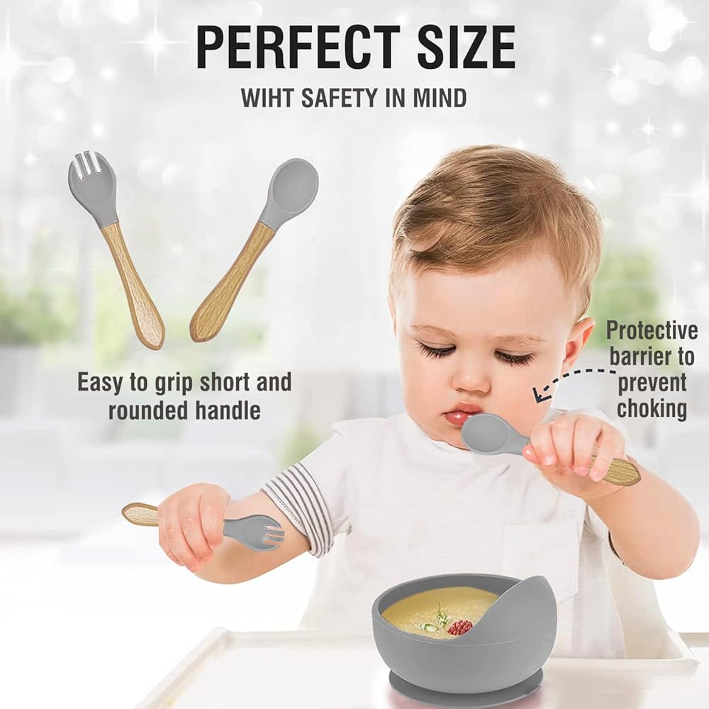 【ملعقة وشوكة للرضع في المرحلة الأولى】أساسيات للمبتدئين مصممة مع واقي أمان خالٍ من الاختناق لمنع التصاق الملاعق بعيدًا في الفم. المقابض المريحة تجعل من الطبيعي أن يمسك الطفل ويتعلم كيفية إطعام نفسه أثناء تطوير المهارات الحركية.