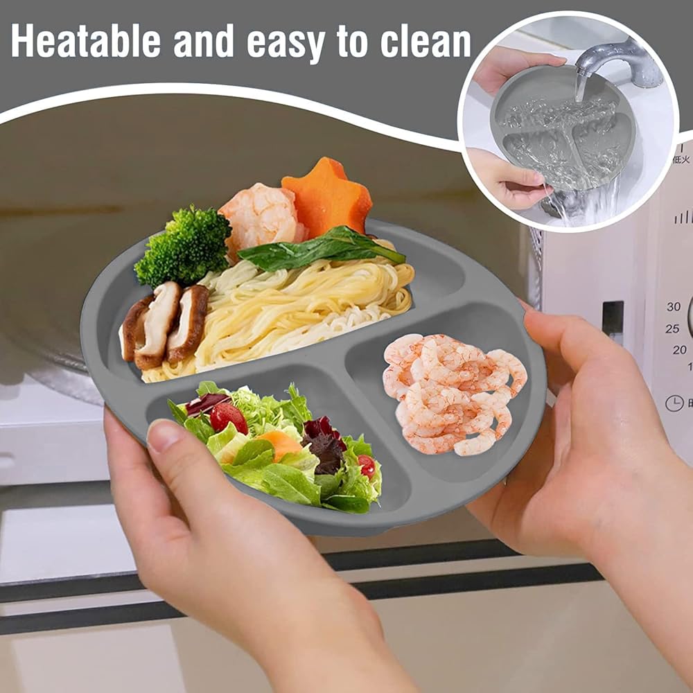 【السلامة أولًا】طبق الأطفال مصنوع من السيليكون الصالح للطعام، وخالي من البيسفينول وكلوريد متعدد الفينيل، وهو مادة ناعمة وآمنة، عديم الرائحة ومقاوم للتقطير. أكثر أمانًا ومتانة من أدوات المائدة البلاستيكية والزجاجية. تساعد ملعقة السيليكون على تحفيز اللثة وتخفيف الخوف من التسنين المبكر دون التسبب في أي ضرر لطفلك. تساعد مادة السيليكون الناعمة والآمنة الأطفال على التدريب على تناول الطعام بمفردهم، وهي الخيار الأفضل لفطام الطفل.