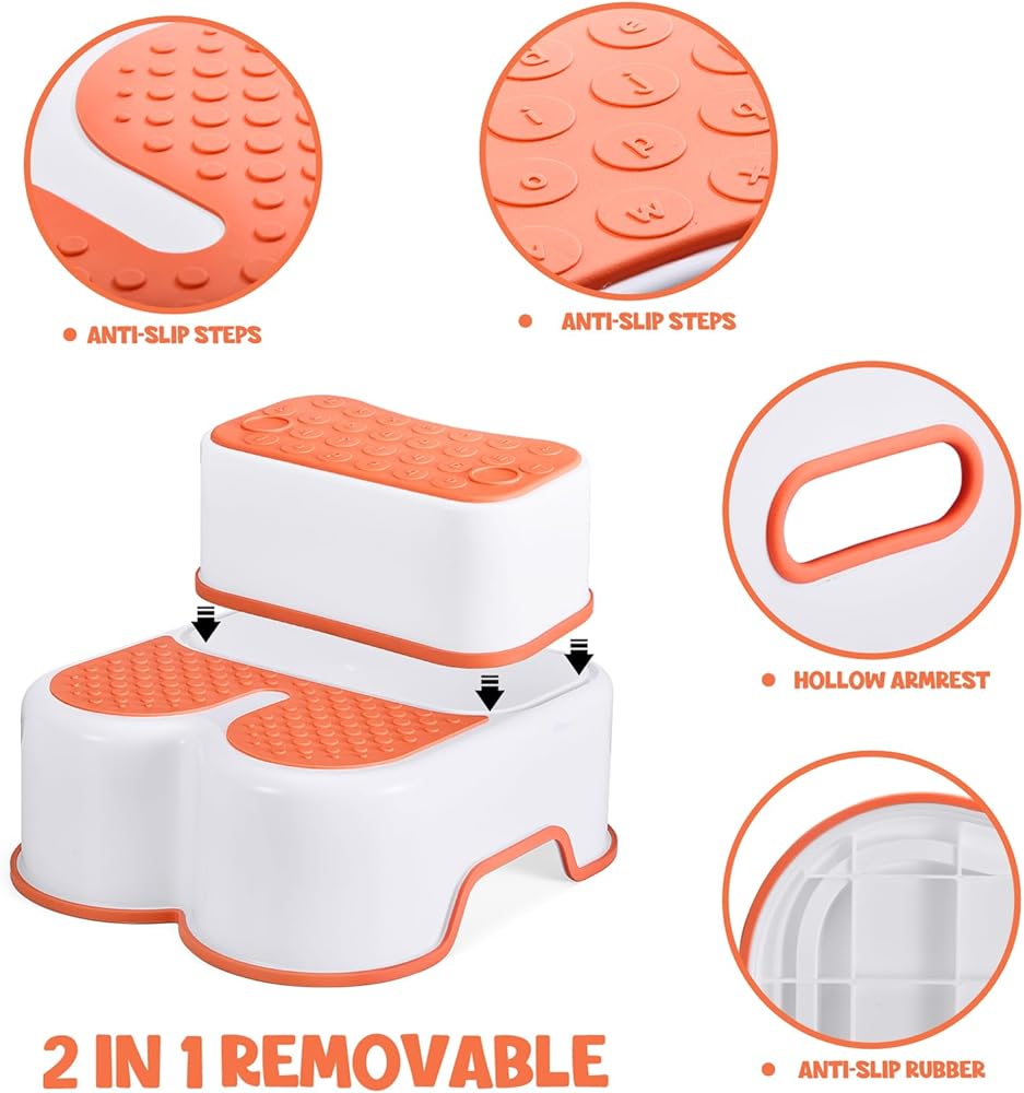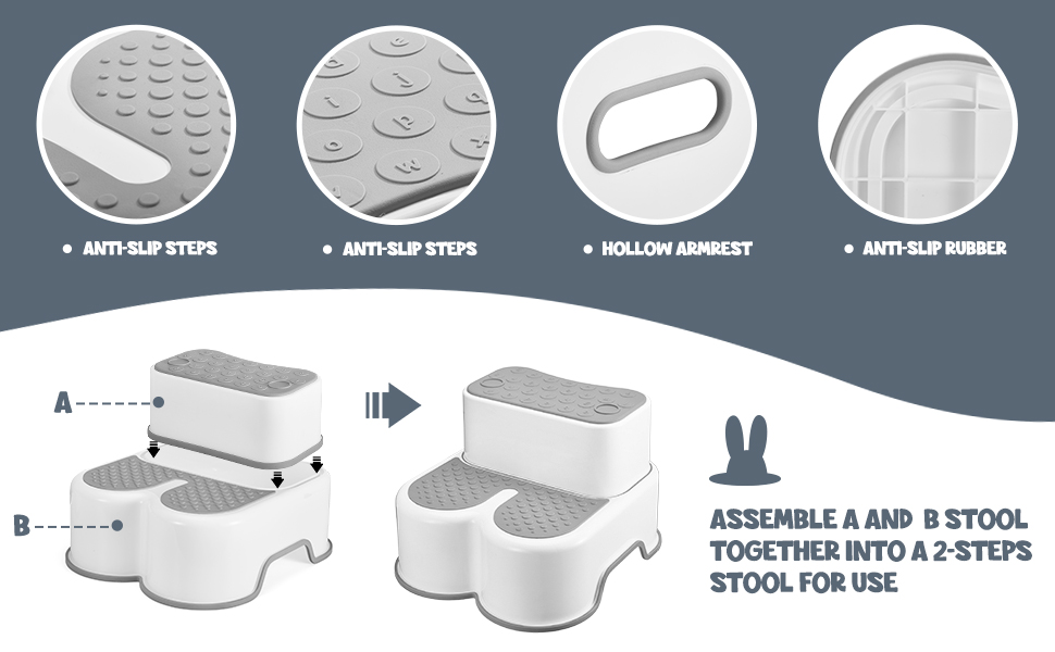 قوي وخفيف الوزن: مقعد الخطوات الخاص بنا مصنوع من مواد متينة فاخرة مع الحفاظ على وزنه الخفيف لسهولة النقل. فهو يوفر منصة مستقرة وآمنة لطفلك، مما يضمن سلامته.