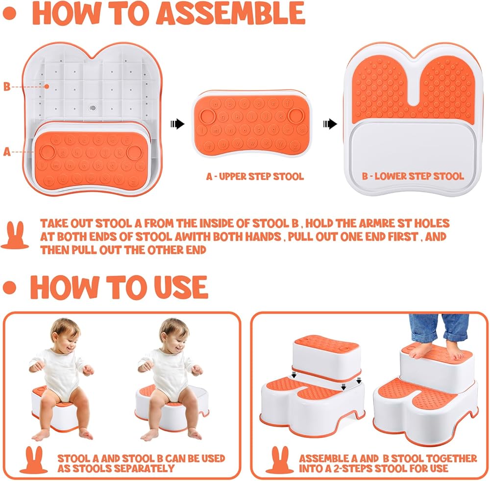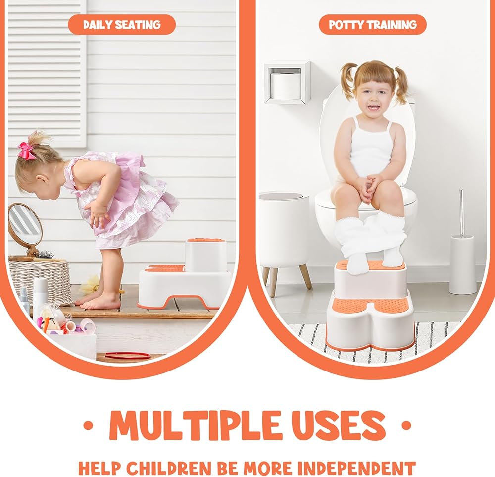 استخدامات متعددة: يمكن استخدام هذا المقعد متعدد الأغراض للتدريب على استخدام المرحاض، والوصول إلى الرفوف العالية، وكمساعد في المطبخ. إنه الارتفاع المثالي للأطفال الصغار ويمكن تكديسه للتخزين المريح.