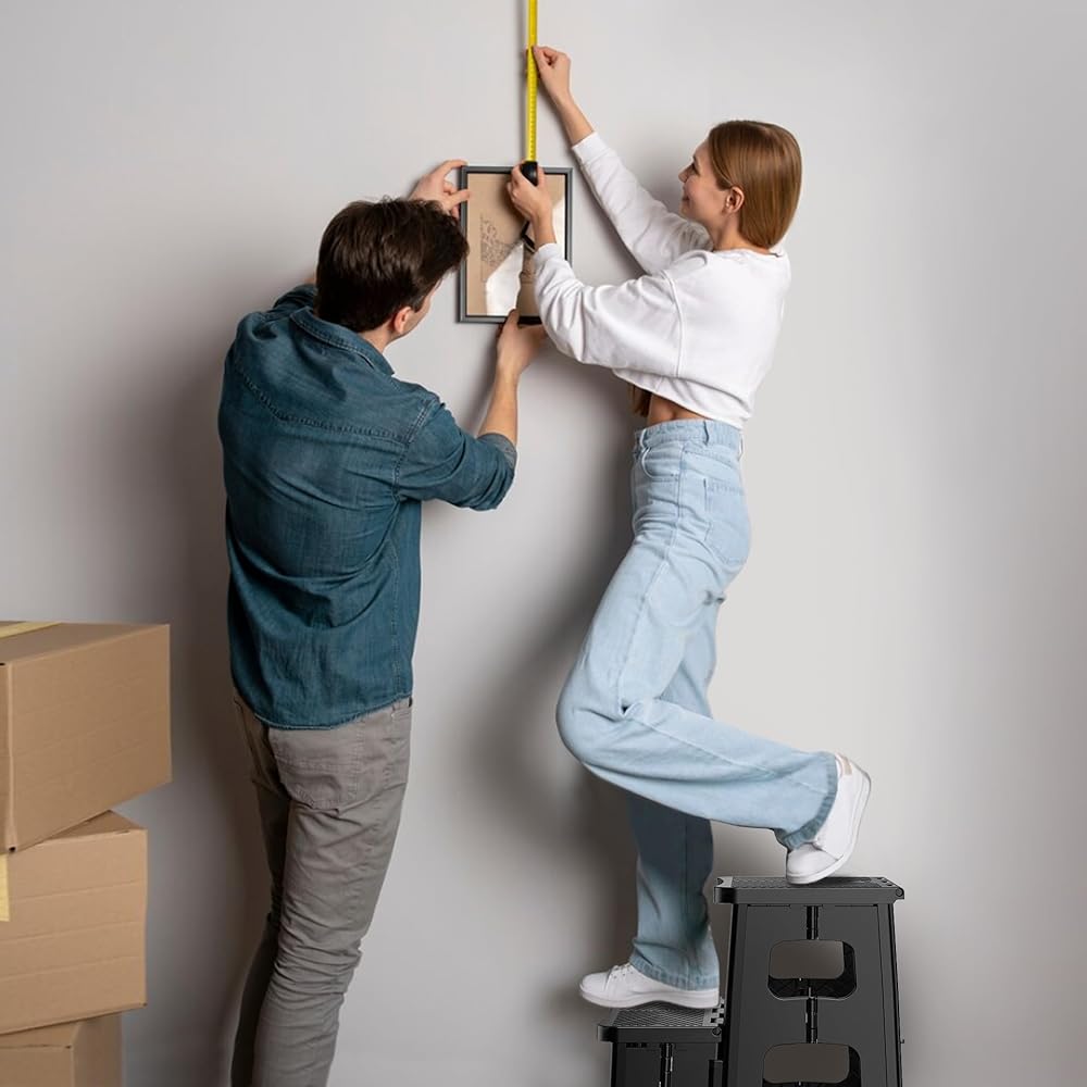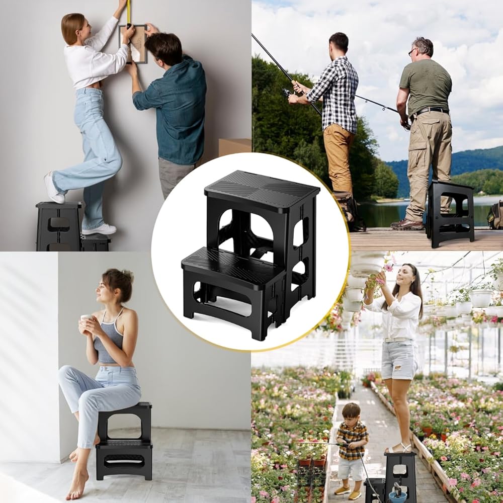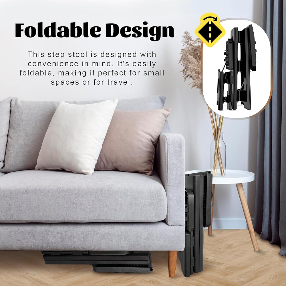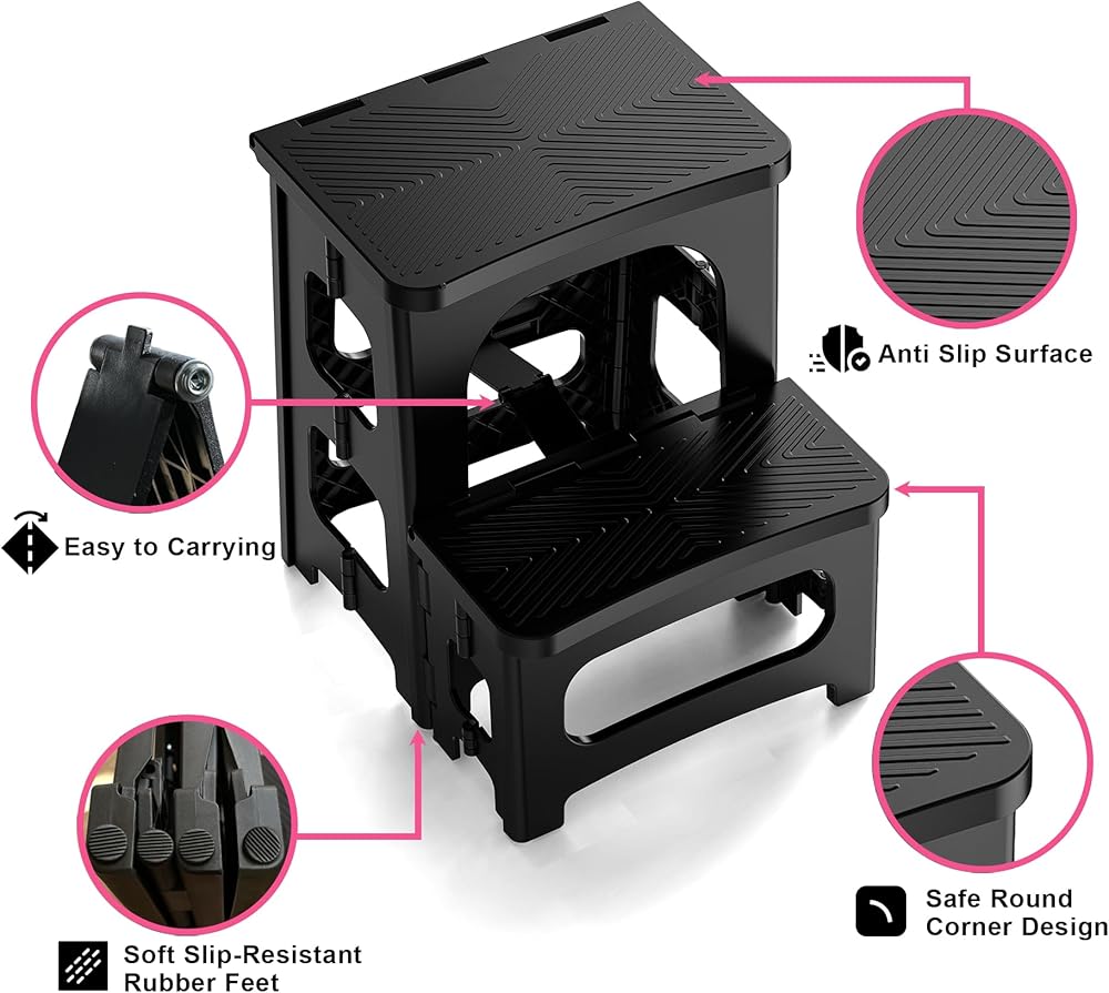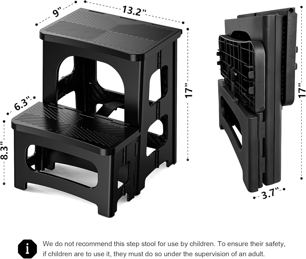 صغير الحجم وقابل للحمل: بأبعاد 15.4 انش عرض × 13.2 انش عمق × 8 انش ارتفاع (خطوة واحدة) و17 انش ارتفاع (خطوتين)، يمكن طي هذا المقعد حتى 3.7 انش فقط لسهولة التخزين. يوفر التصميم المكون من خطوتين وصولاً مريحًا دون المساس بإمكانية الطي. يفتح بسهولة بيد واحدة ويغلق بأمان لمنع الحوادث.